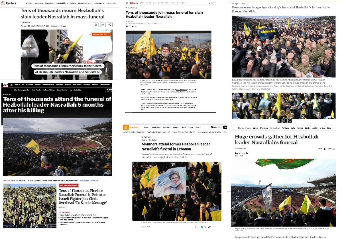 تلویزیون و خبرگزاری رویترز در این خصوص چنین تیتر زد: دهها هزار نفر با برگزاری مراسم تشییع گستردهای برای سید حسن نصرالله عزاداری کردند.