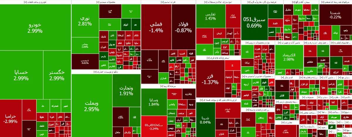 در معاملات امروز بازار، شاخص کل بورس تهران با ۱۰ هزار و ۳۵۳ واحد افزایش در ارتفاع ۲ میلیون و ۸۵۴ هزار و ۳۲۱ واحدی قرار گرفت.