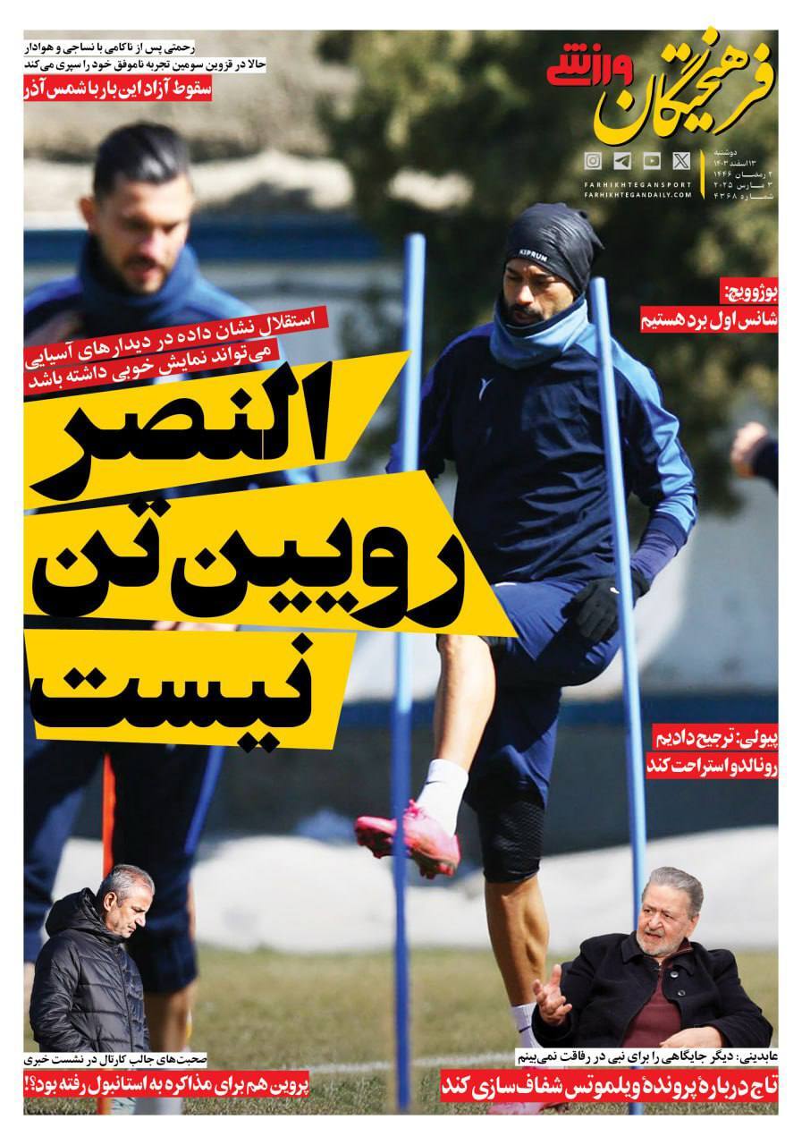 روزنامه‌های ورزشی دوشنبه ۱۳ اسفند ۱۴۰۳