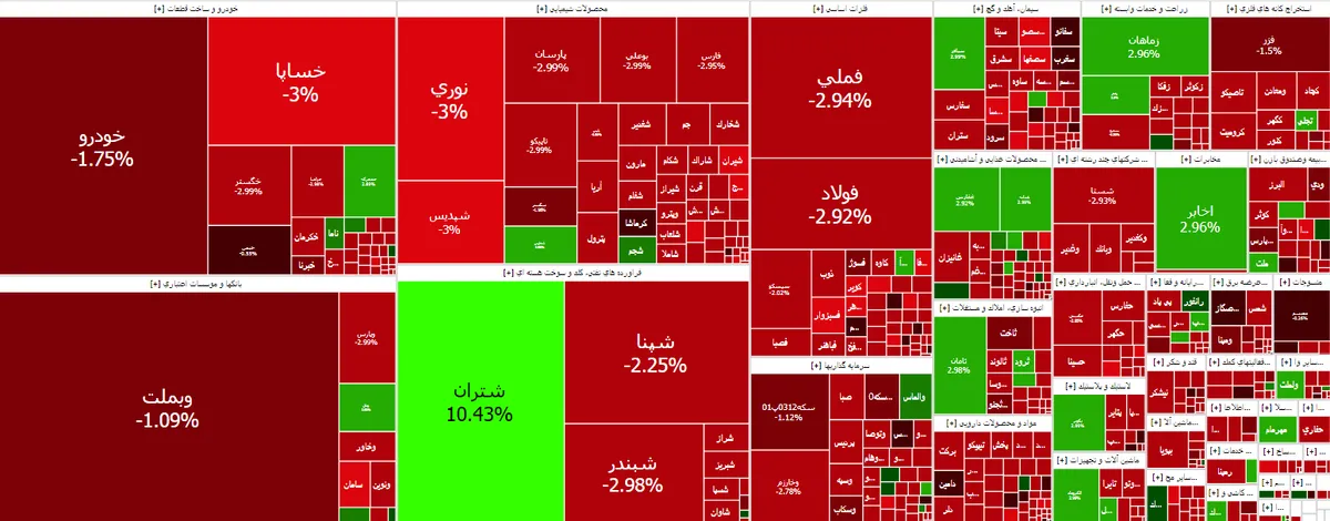 در پایان معاملات امروز بازار، شاخص کل بورس تهران با ۵۷ هزار و ۴۹۹ واحد کاهش در ارتفاع ۲ میلیون و ۸۱۳ هزار و ۴۴۷ واحدی قرار گرفت.