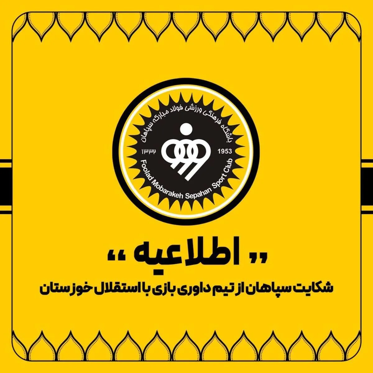 باشگاه سپاهان اعلام کرد از تیم داوری بازی با استقلال خوزستان شکایت کرده است.