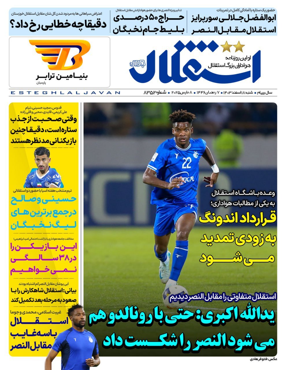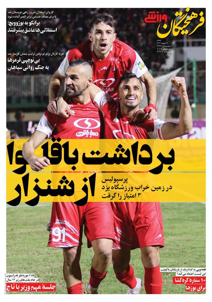 روزنامه‌های ورزشی شنبه ۱۸ اسفند ۱۴۰۳