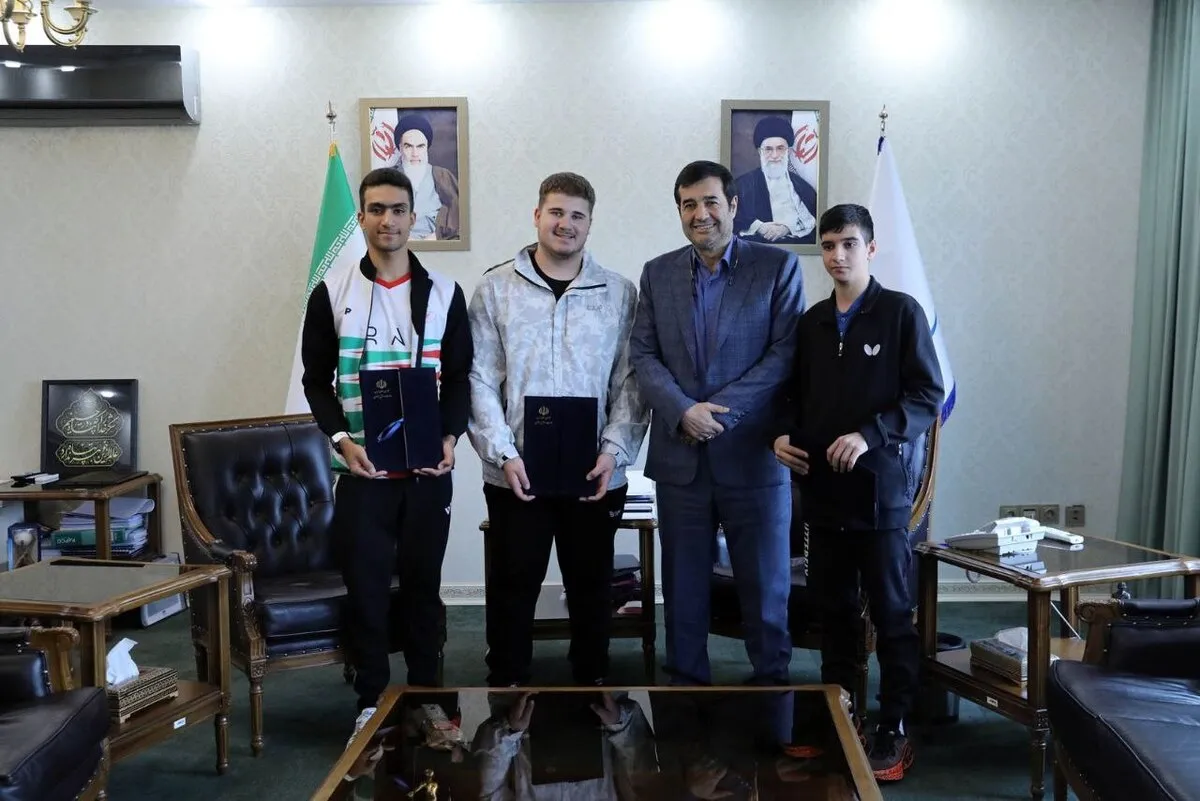 محمد بیرانوند، اولین تیرانداز المپیکی رشته تراپ، آرش میرباقری، قهرمان دوچرخه سواری جوانان آسیا و بنیامین فرجی، پدیده ١۵ ساله تیم ملی تنیس روی میز، سه تن از چهرههای نوظهور ورزش ایران که طی چند وقت اخیر درخشش قابل ملاحظهای در رویدادهای بین المللی معتبر داشتند، امروز به دعوت وزیر ورزش و جوانان به محل این وزارتخانه آمدند.