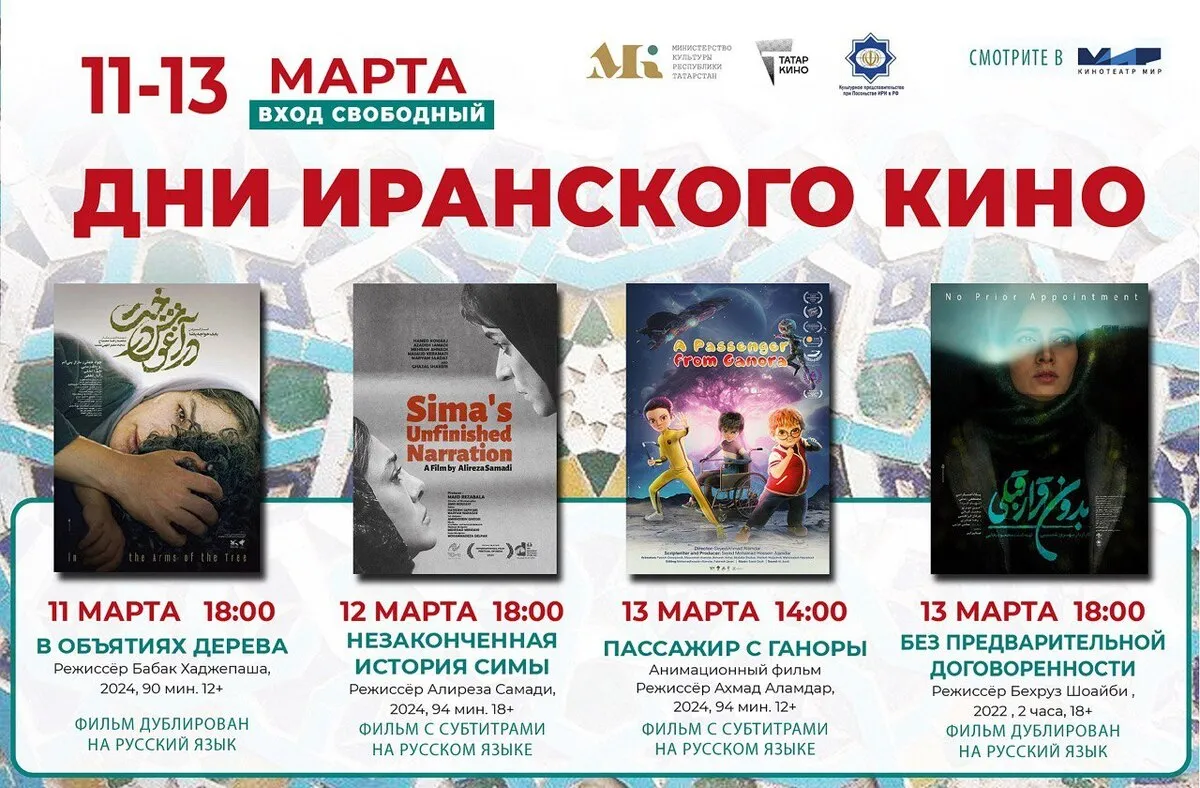 به گزارش خبرگزاری آنا، در رویداد «روزهای سینمای ایران»، سرکنسولگری کشورمان در قازان، وزارت فرهنگ جمهوری تاتارستان و مؤسسه تاتارکینو، مشارکت دارند، ۴ اثر ارزشمند ایرانی به نمایش در میآید.