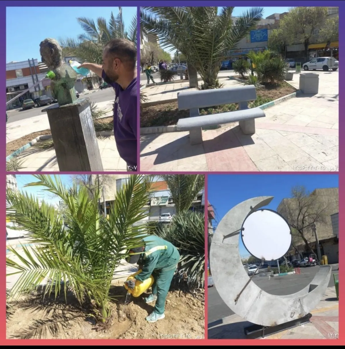 وی ادامه داد: نصب و جانمائی نیمکت و سطل زباله های بتنی و مقاوم در مقابل تغییرات جوی، کاشت فینکس و گونه زیبای سینره المان همراه با شستشوی تندیس رئیس جمهور شهید بزرگوار در دوران پیروزی انقلاب اسلامی از جمله اقدامات صورت گرفته در این میدان می باشد.