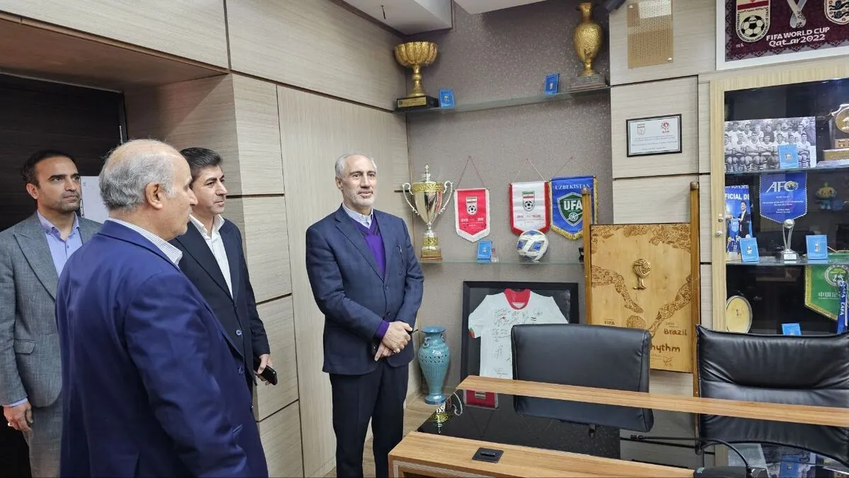 مهدی تاج، رئیس و هدایت ممبنی، دبیرکل فدراسیون ضمن استقبال از وی به ارائه توضیحاتی درباره امکانات و شرایط مرکز ملی فوتبال پرداختند.