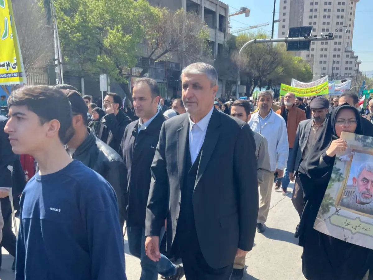 معاون رئیسجمهور و رئیس سازمان انرژی اتمی ایران، همزمان با آخرین جمعه ماه مبارک رمضان، در راهپیمایی روز جهانی قدس شرکت کرد.