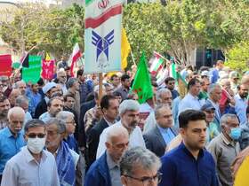 به گزارش خبرنگار آنا، دانشگاهیان دانشگاه آزاد اسلامی  همزمان با روز جهانی قدس همگام و همراه با اقشار مختلف مردم فهیم و بصیر ایران اسلامی با حضور در راهپیمایی روز جهانی قدس، انسجام و وحدت ملت ایران را به دنیا نشان دادند و در همراهی با شعار «علی العهد یا قدس» حمایت خود را از مردم مظلوم فلسطین به نمایش گذاشتند. مراسم روز قدس نمادی از حمایت جهانی از مردم مظلوم فلسطین شناخته می‌شود.