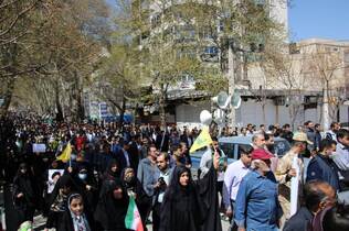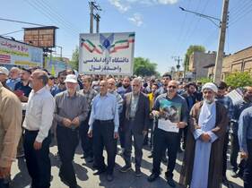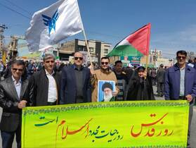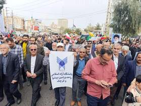 دانشگاهیان دانشگاه آزاد اسلامی در روز جهانی قدس با مردم همیشه در صحنه در دریای خروشان راهپیمایی علیه رژیم شغالگر قدس همراه شدند و فریاد مرگ بر اسرائیل سردادند.