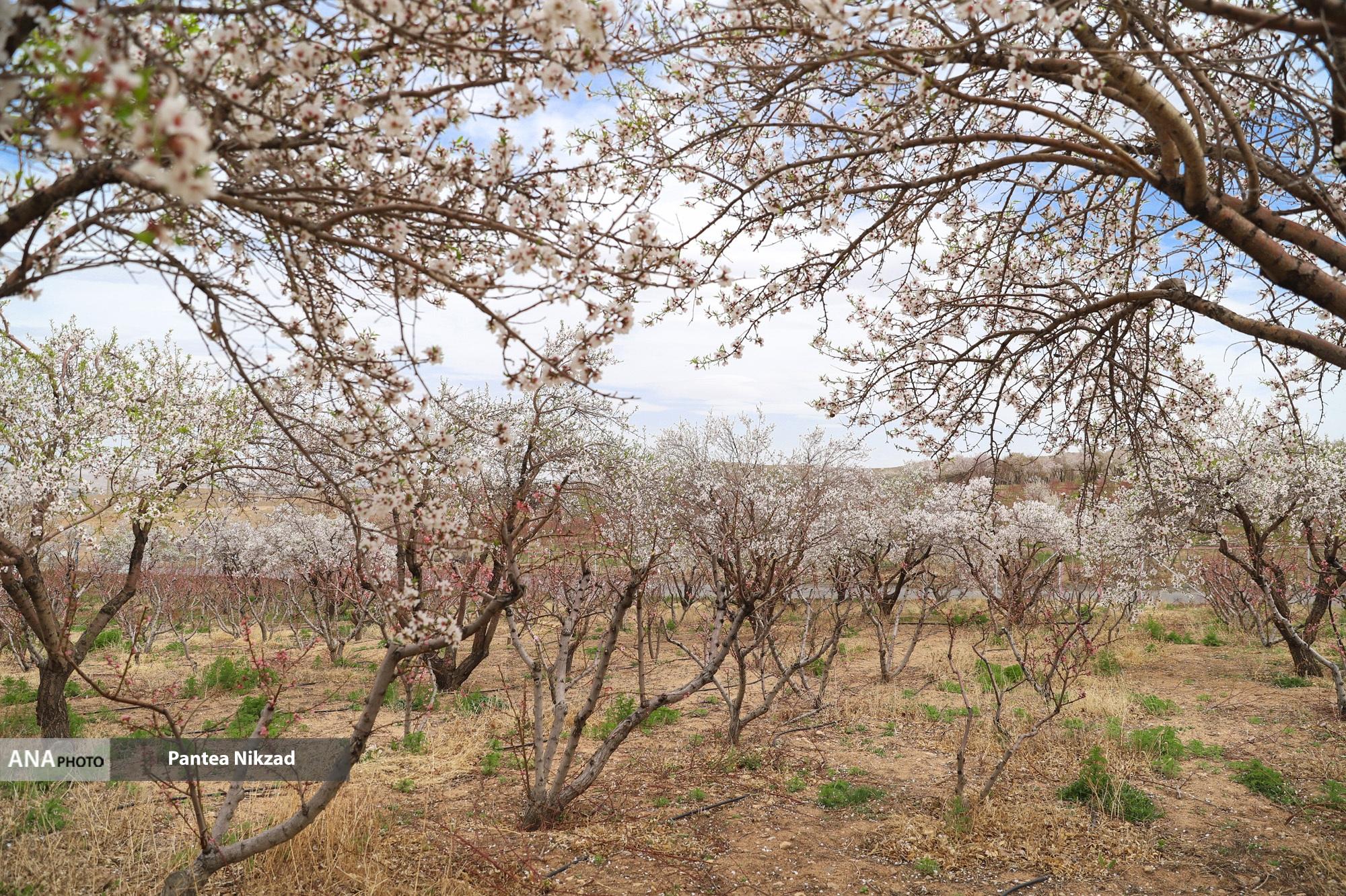 تصاوير این گزارش مربوط به باغات شهر سامان است که یکی از قطب های تولید بادام کشور است. با توجه به اینکه بادام نیاز آبی کمی دارد، در چند دهه اخیر ، باغداران آبیاری قطره ای را جایگزین آبیاری غرقابی کرده اند.