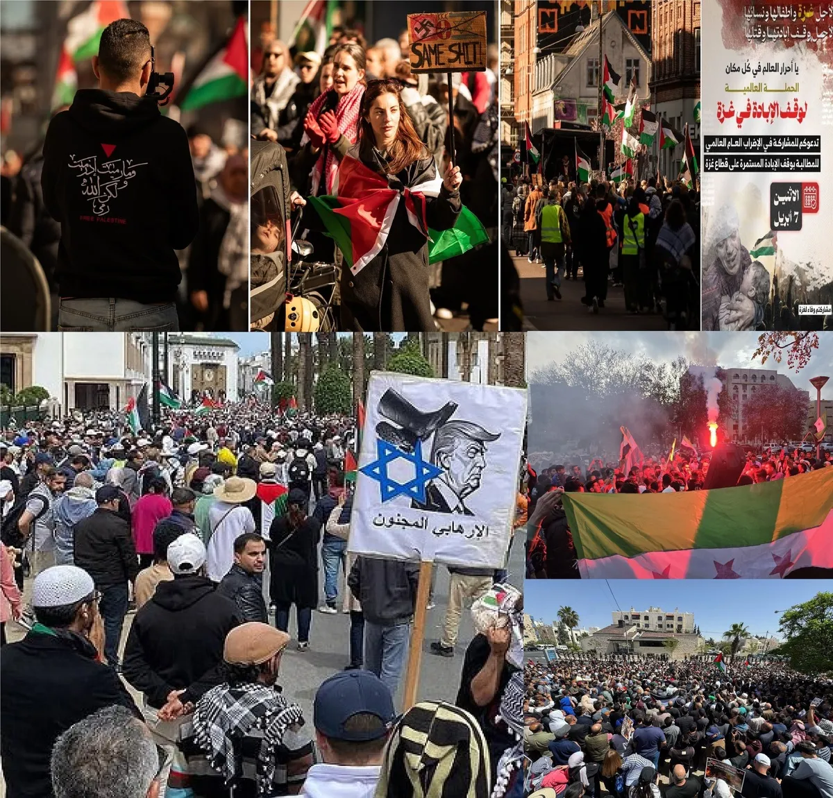 حامیان فلسطین با در دست داشتن پرچمهای فلسطین و شعارهای اعتراضی، در تظاهراتی گسترده در شهرهای مختلف جهان از جمله نیویورک، برلین و رباط، بر لزوم حمایت از مردم غزه و توقف کشتار آنها تاکید کردند. این رویدادها در شرایطی برگزار میشود که بحران انسانی در غزه به شدت در حال افزایش است.