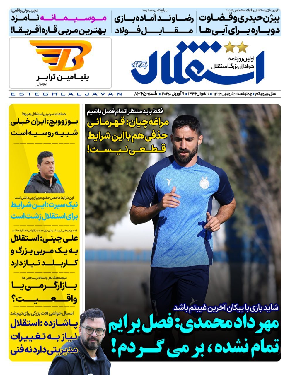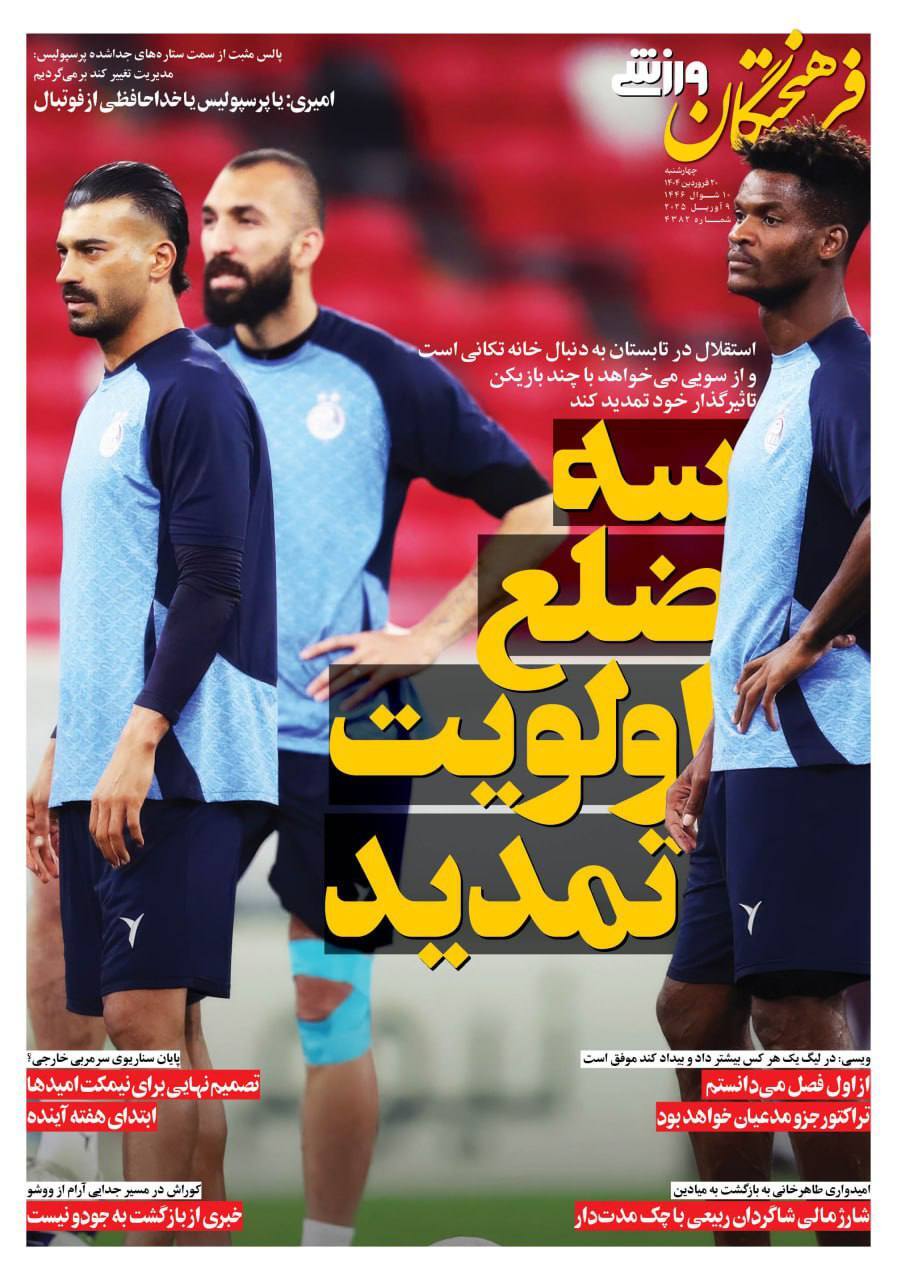 روزنامههای ورزشی چهارشنبه 20 فروردین ۱۴۰۴