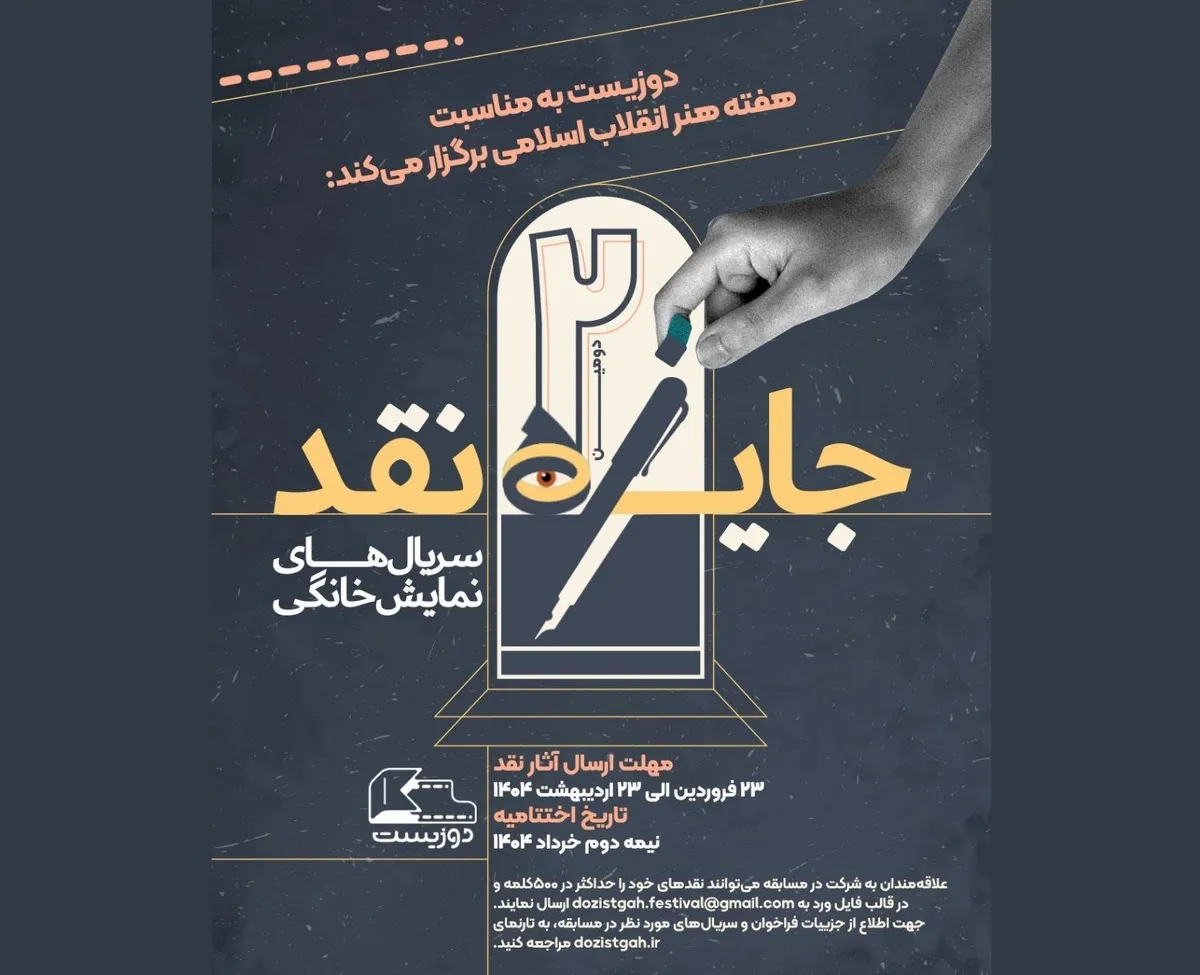 به گزارش خبرگزاری آنا، باتوجه به نیاز فضای فرهنگی کشور به جریان نقد حرفهای، دومین دوره جایزه نقد فیلم بر بستر نقد سریالهای شبکه نمایش خانگی به همت گروه فرهنگی دوزیست برگزار میشود.