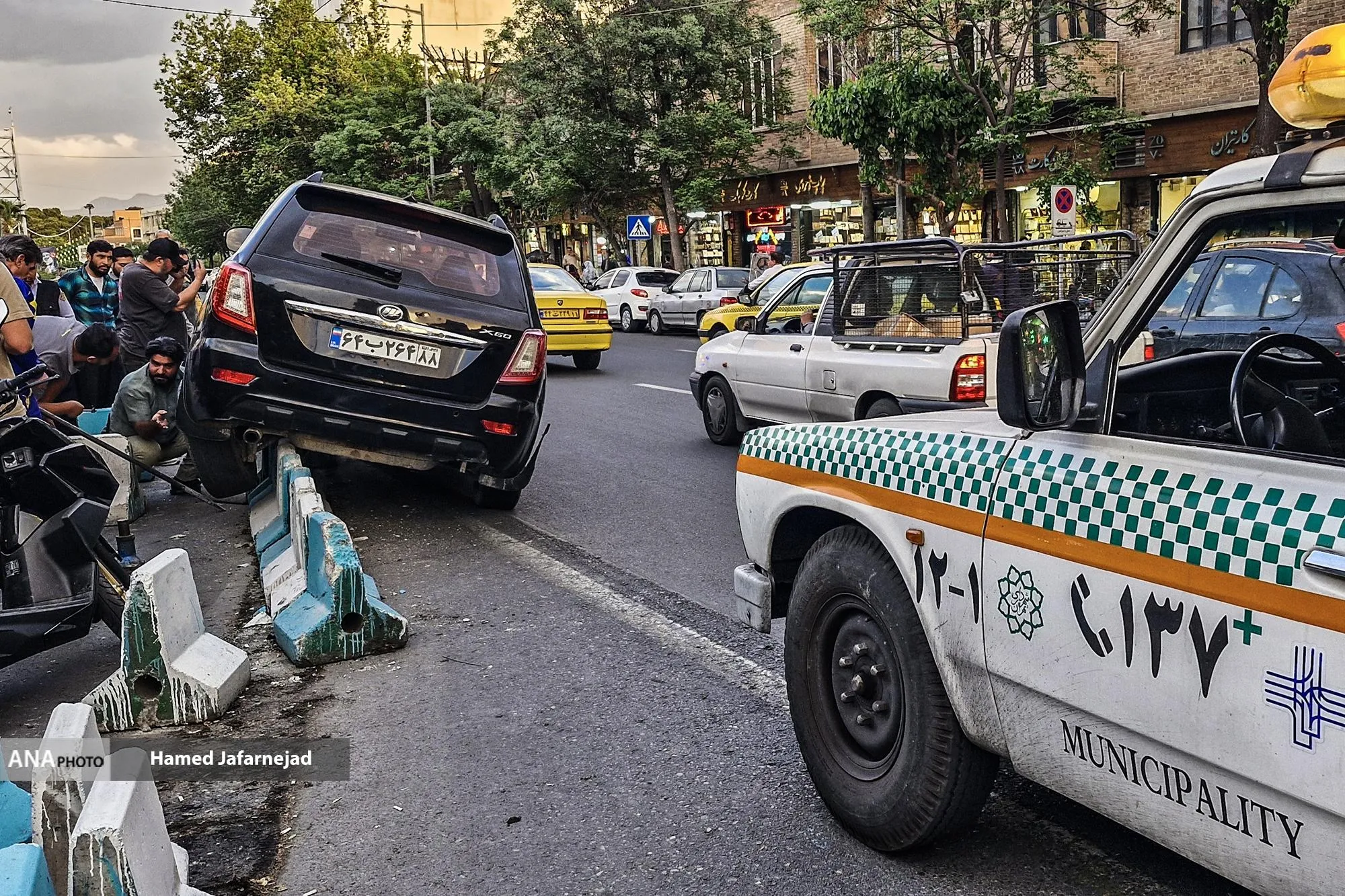 یک دستگاه خودرو لیفان X60 بطور عجیبی از مسیر منحرف و به جدول وسط تقاطع خیابان صفی علیشاه و میدان بهارستان برخورد کرد.