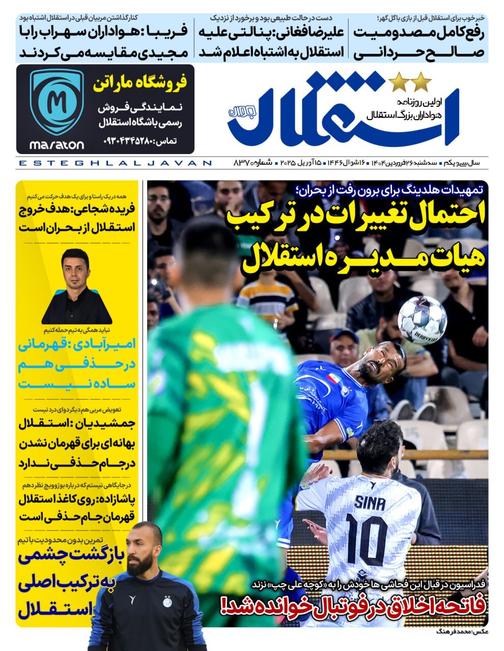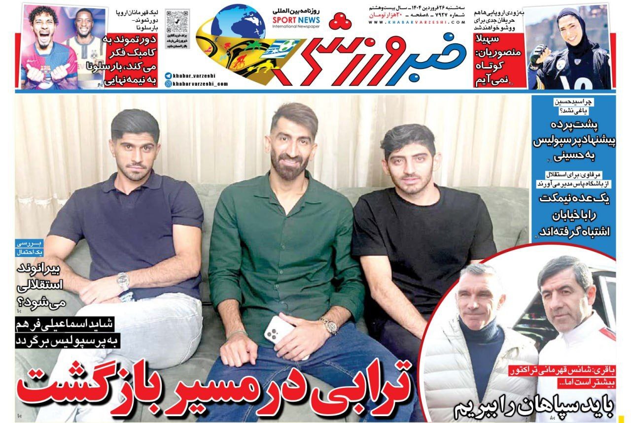 روزنامه‌های ورزشی سه شنبه ۲۶ فروردین ۱۴۰۴