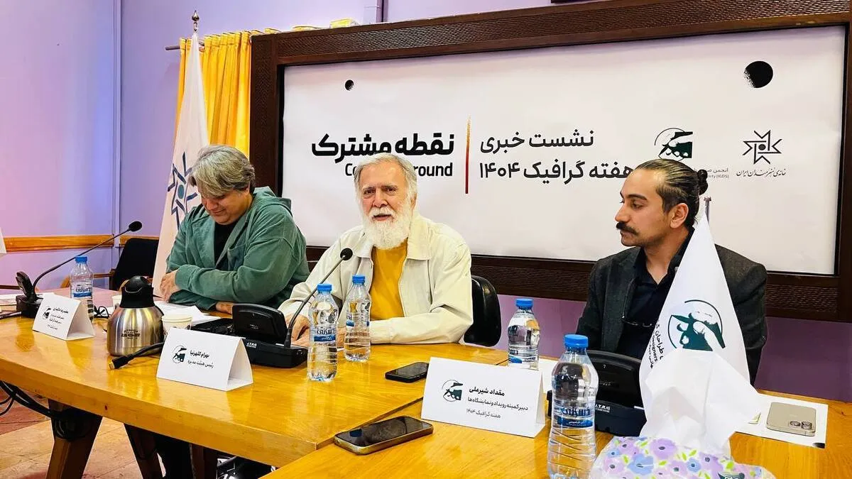 به گزارش خبرنگار خبرگزاری آنا، نشست خبری هفته گرافیک ۱۴۰۴« نقطه مشترک» با حضور بهرام کلهرنیا رییس هییت مدیره، مقداد شیرعلی دبیر کمیته رویداد و نمایشگاهها هفته گرافیک، محمدرضا خاکساری عضو هییت مدیره و دبیر هفته گرافیک ساعتی پیش سی و یکم فروردین ماه در سالن استاد امیرخانی خانه هنرمندان برگزار شد.