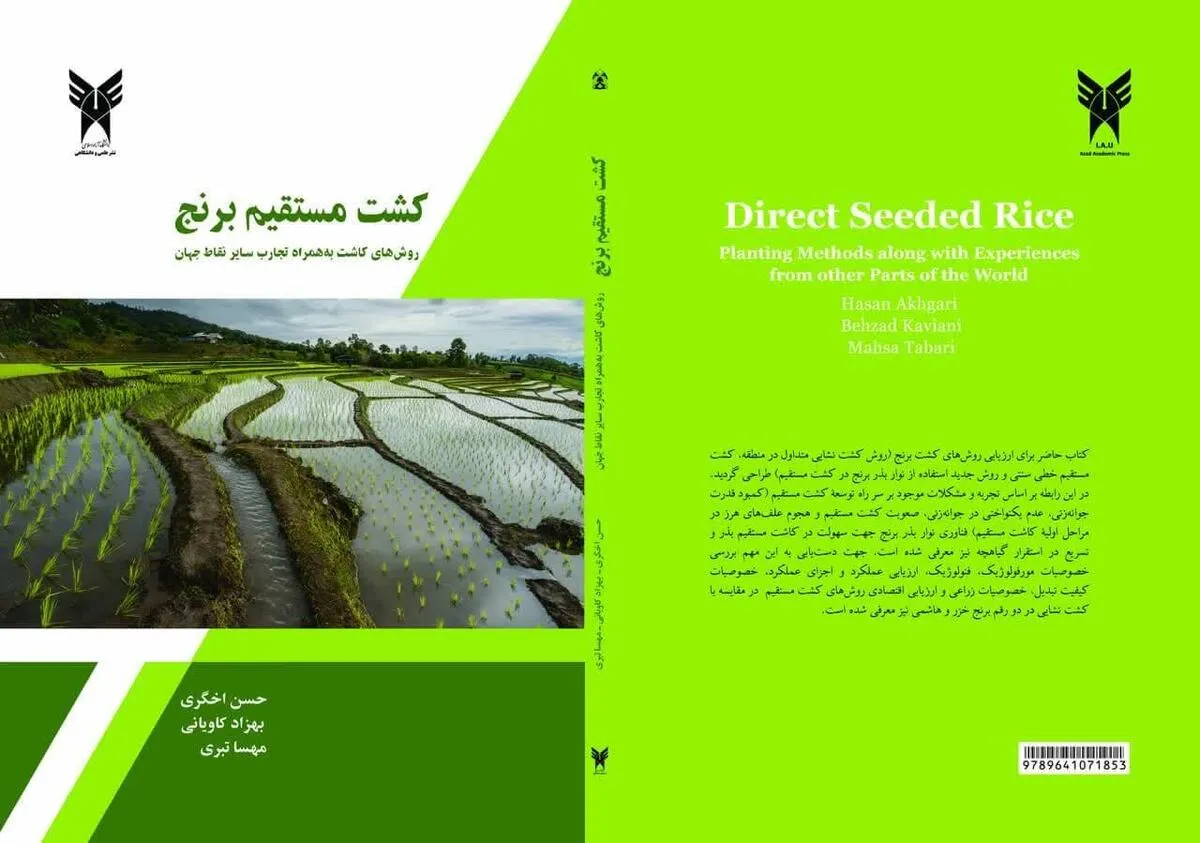 علیرضا صیداوی معاون پژوهش و فناوری دانشگاه آزاد اسلامی واحد رشت به خبرنگار آنا گفت: کتاب «کشت مستقیم برنج (روشهای کاشت به همراه تجارب سایر نقاط جهان)» توسط حسن اخگری، بهزاد کاویانی و مهسا تبری اعضای هیئت علمی دانشکده کشاورزی، آب، غذا و فراسودمندها دانشگاه آزاد اسلامی واحد رشت تألیف شد.