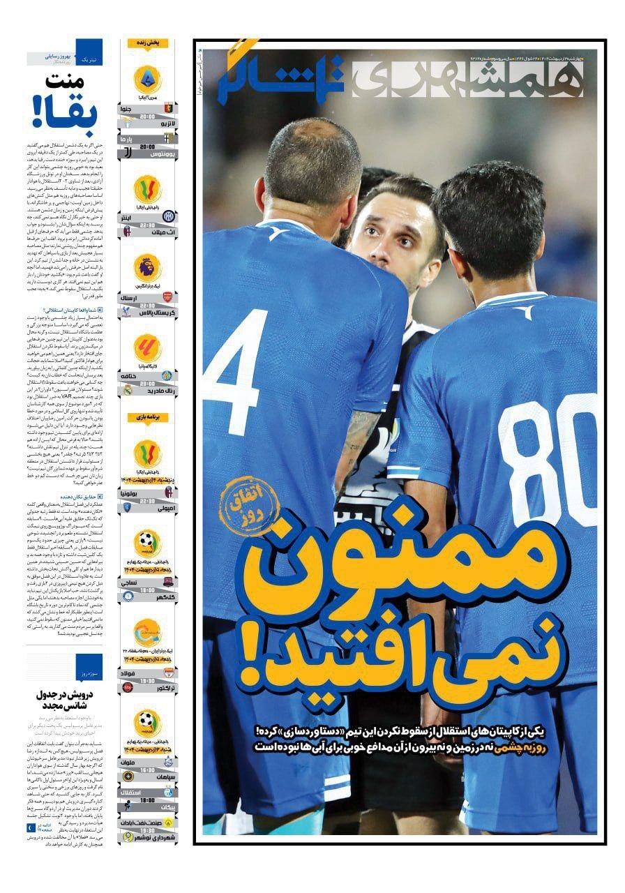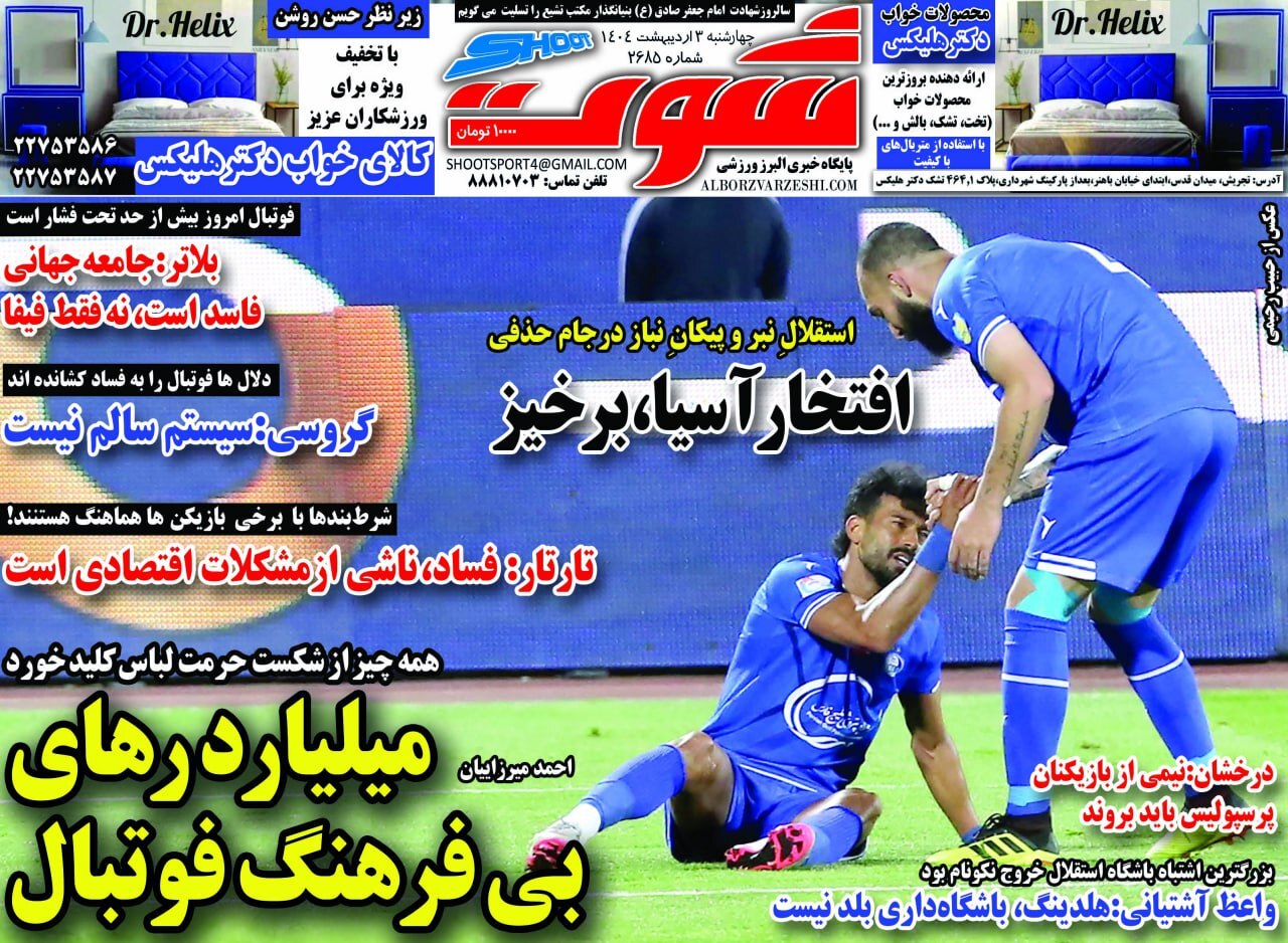روزنامه‌های ورزشی چهارشنبه ۳ اردیبهشت ۱۴۰۴