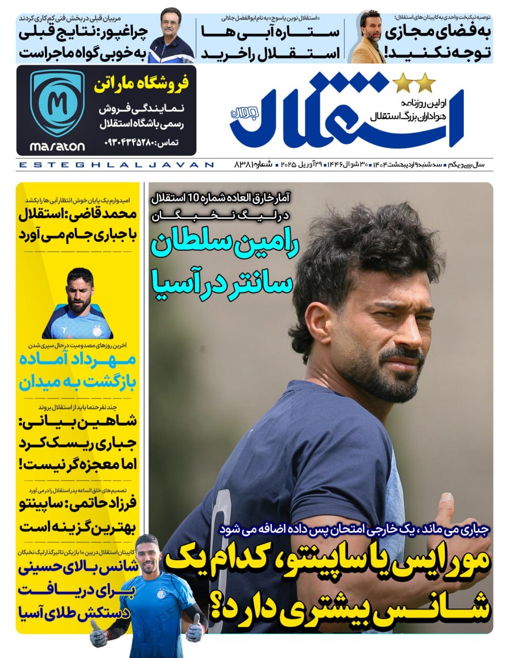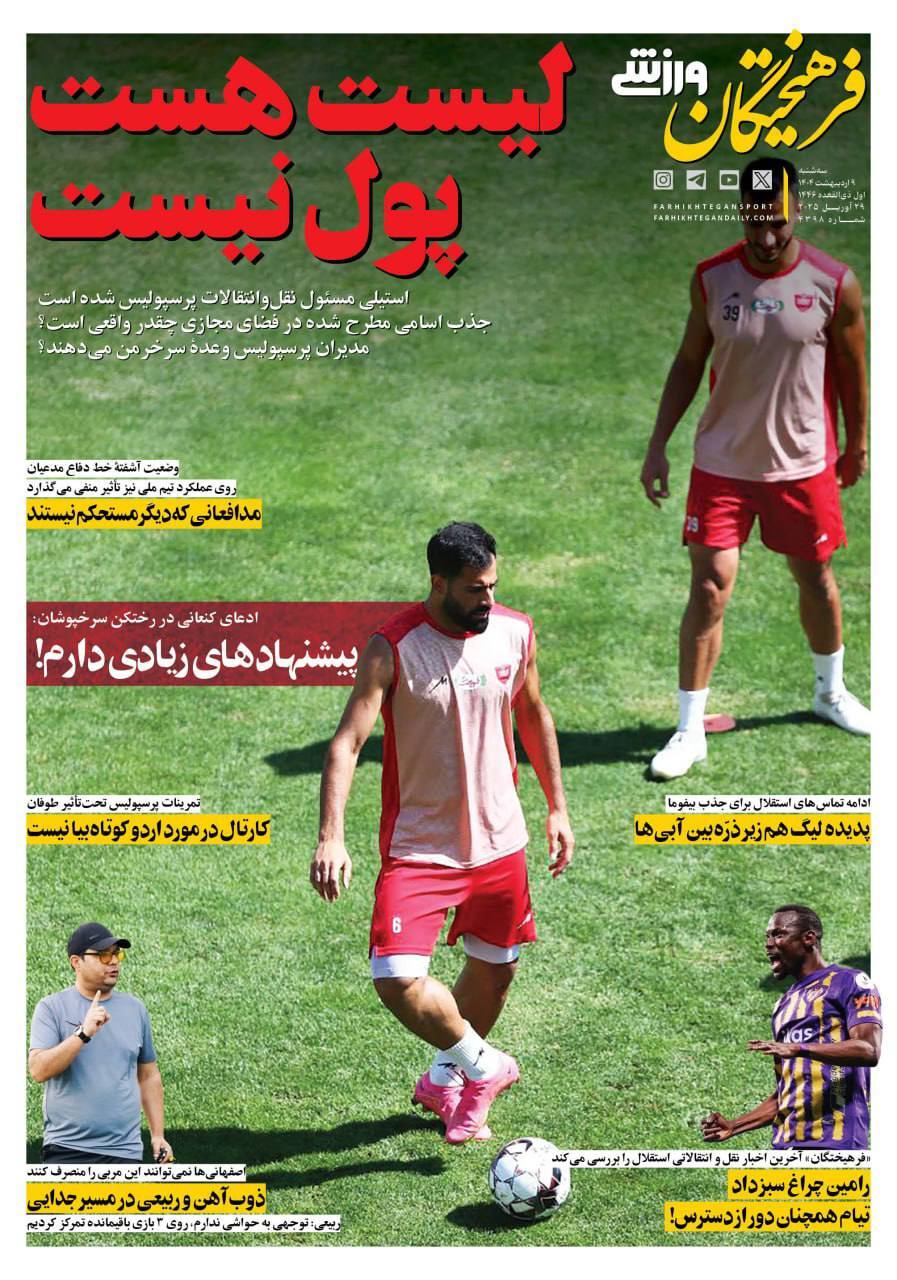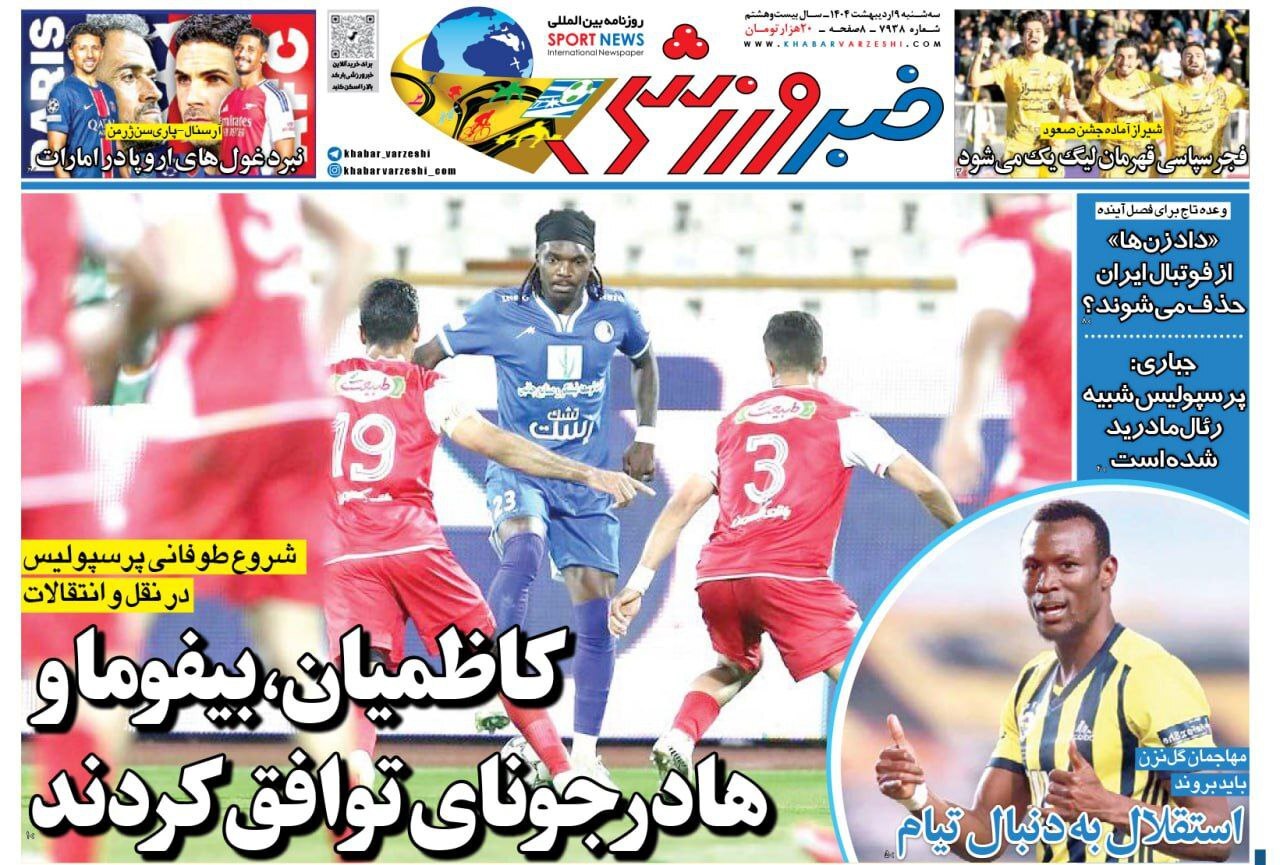 روزنامه‌های ورزشی سه شنبه ۹ اردیبهشت ۱۴۰۴