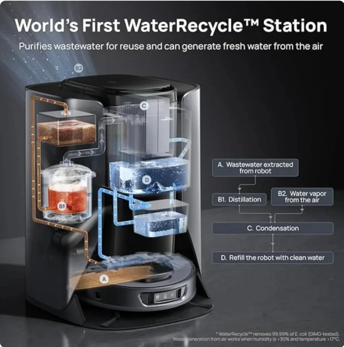 وکیوم رباتیک 3i S10 Ultra سیستم بازیافت آب، فاضلاب را تصفیه کرده و رطوبت هوا را جذب می‌کند تا آب خالص تولید کند، بدون نیاز به پر کردن دستی یا اتصال به سیستم فاضلاب. این ویژگی سازگار با محیط‌زیست، امکان قرارگیری دستگاه در هر مکانی، مانند اقامتگاه AirBnB را فراهم کرد و در طول پیاده‌روی‌ها و بازدید از آبشارها، کابین را تمیز نگه داشت. تی رولری UltraReach با سرعت 330 دور در دقیقه، لکه‌های چسبناک زیر میز ناهارخوری را پاک می‌کند و به‌صورت خودکار تمیز می‌شود تا از کثیفی تی جلوگیری شود.