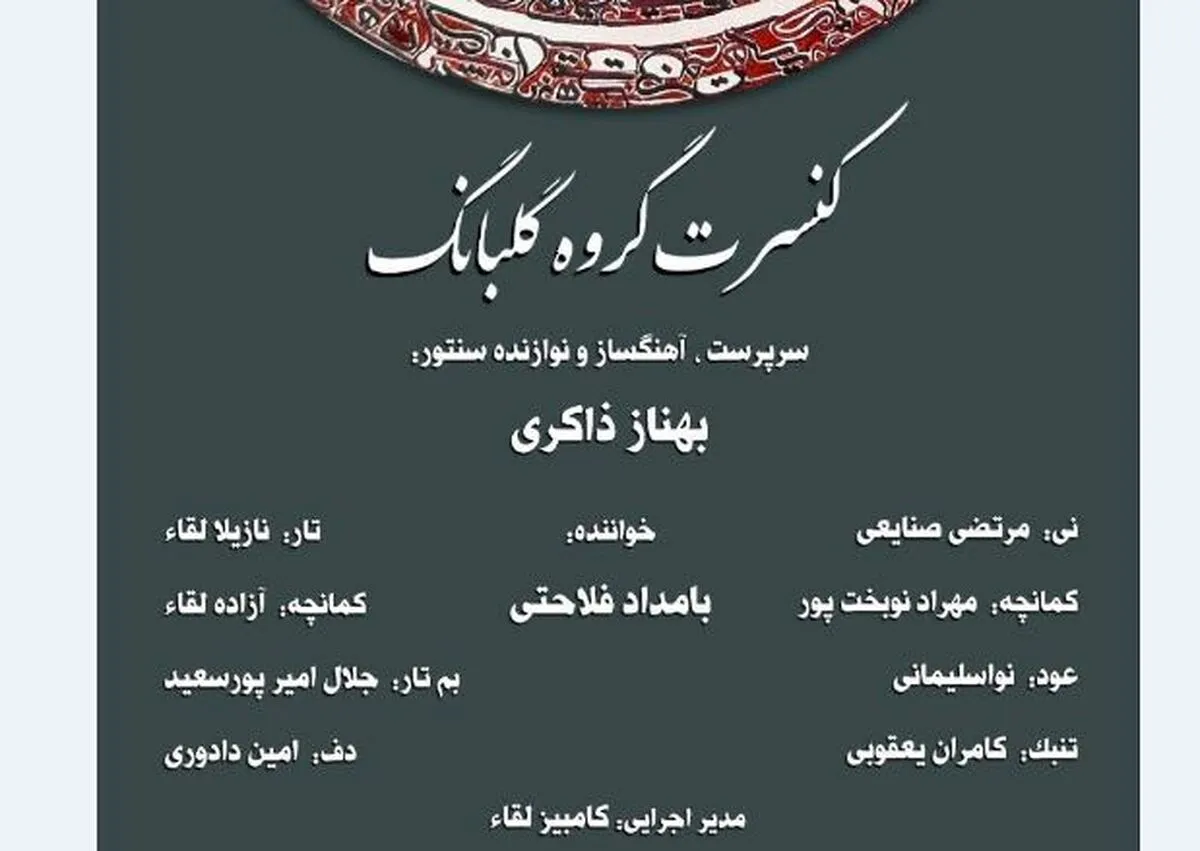 کنسرت گروه موسیقی ایرانی گلبانگ از ساعت ۲۱:۳۰ شامگاه جمعه نوزدهم اردیبشهت ماه در تالار وحدت برگزار میشود و علاقهمندان میتوانند بلیت آن را از سایت ایران کنسرت تهیه کنند.