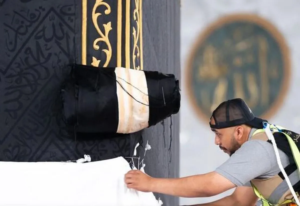 به گزارش خبرگزاری آنا، شب گذشته، قسمت پایینی پرده کعبه به ارتفاع ۳ متر بالا رفت.