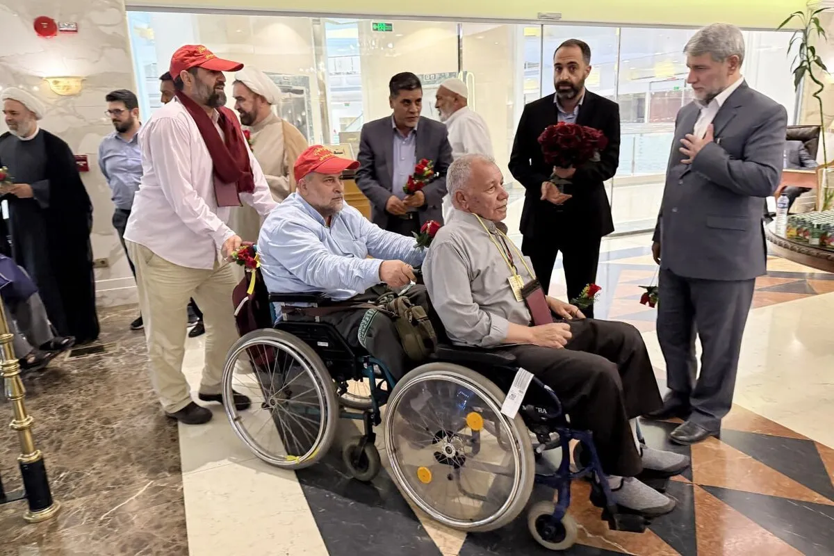 استقبال مدیران بعثه مقام معظم رهبری از کاروان ویژه جانبازان در مدینه منوره