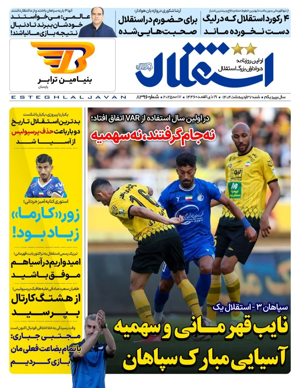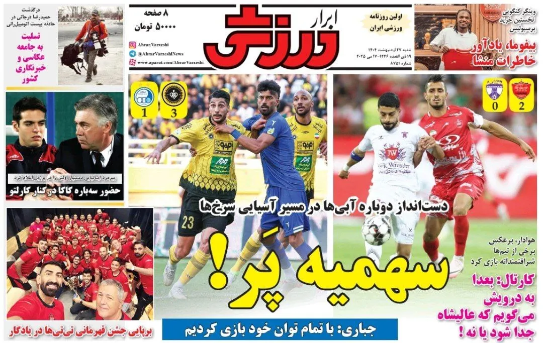 روزنامههای ورزشی شنبه ۲۷ اردیبهشت ۱۴۰۴