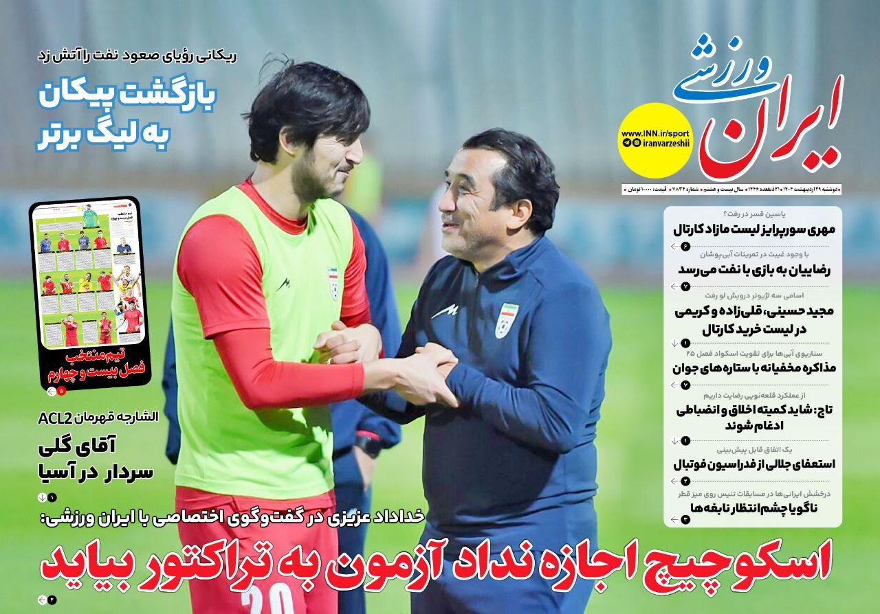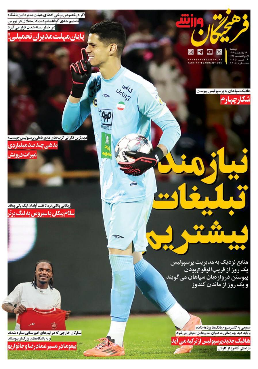 روزنامه‌های ورزشی دوشنبه ۲۹ اردیبهشت ۱۴۰۴
