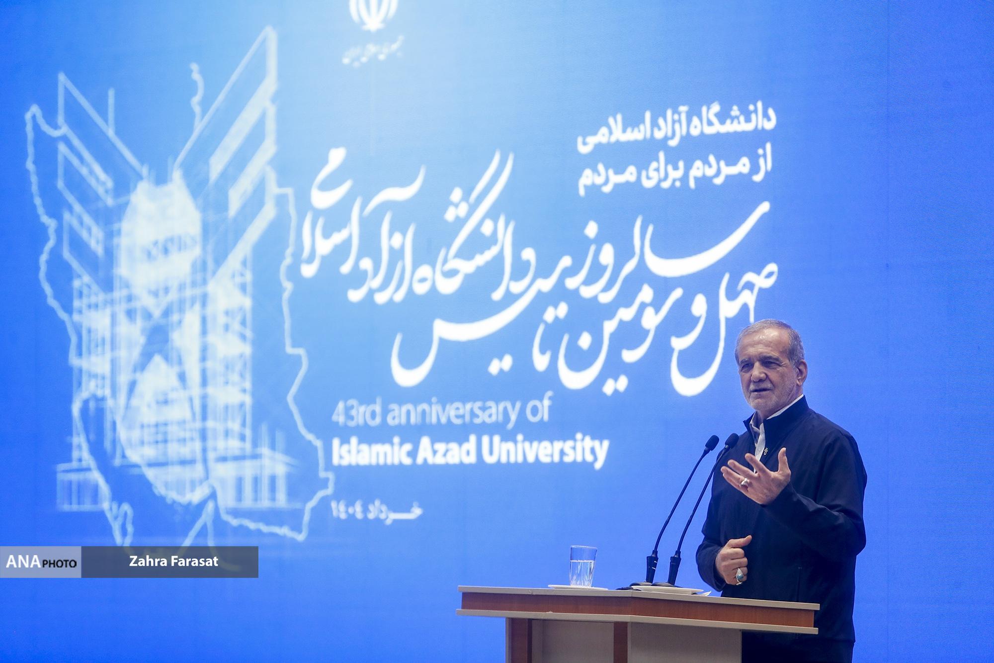 مراسم چهل و سومین سالگرد دانشگاه آزاد اسلامی با سخنرانی مسعود پزشکیان رییس جمهور ،حجت الاسلام والمسلمین عبدالحسین خسروپناه دبیر شورای عالی انقلاب فرهنگی و محمدمهدی طهرانچی رئیس این دانشگاه آغاز شد.