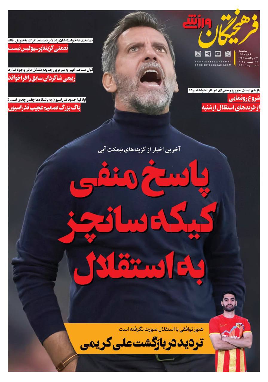 روزنامههای ورزشی سه شنبه 6خرداد ۱۴۰۴