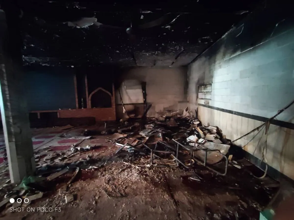 مسجد جامع امام سجاد(ع) واقع در شهرک رضویه در جنوب شرق تهران در آتش سوخت.