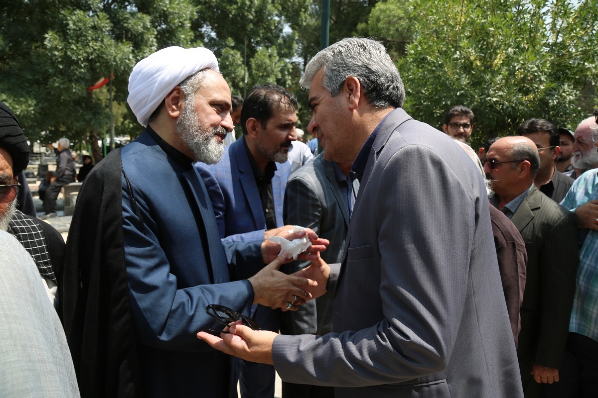 در مراسم وداع با پیگیر این عالم ربانی در مسجد جامع کرمانشاه، نماز میت به امامت نماینده ولیفقیه در استان و امامجمعه کرمانشاه، اقامه و پس از آن تشییع تا میدان آزادی شهر کرمانشاه صورت گرفت و در محل قطعه علمای شهر کرمانشاه در کنار مزار شهدا و چهارمین شهید محراب به خاک سپرده شد.