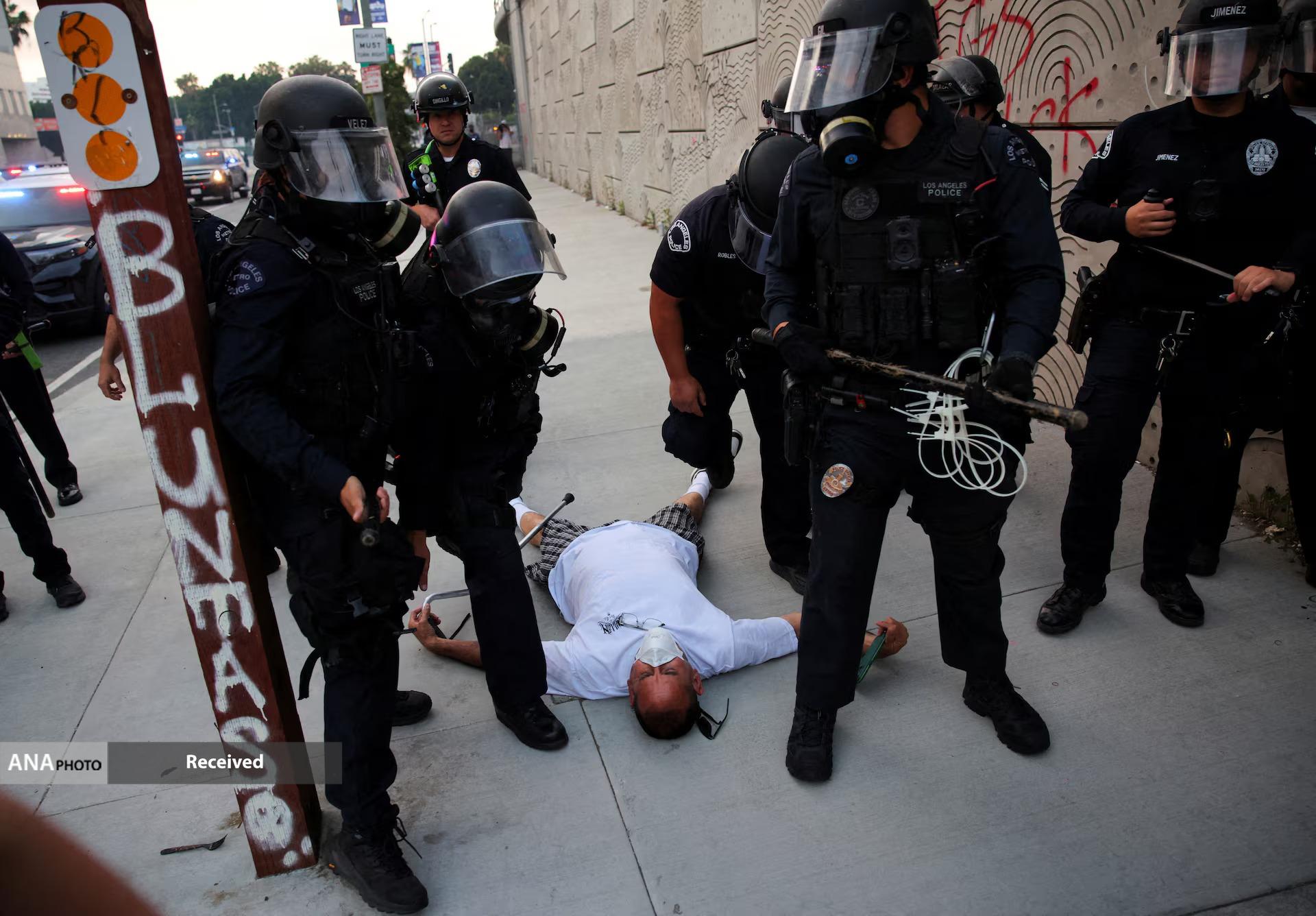 همزمان با ورود تفنگداران نیروی دریایی آمریکا به لس آنجلس برای سرکوب گسترده معترضان، درگیری‌ها در این شهر شدت گرفته است.