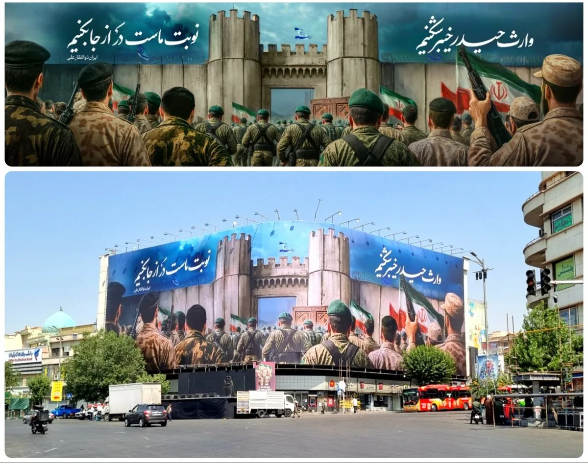به گزارش خبرنگار خبرگزاری آنا، دیوارنگاره میدان انقلاب ساعتی پیش با شعار «وارث حیدر خیبر شکنیم، نوبت ماست دَر از جا بکنیم» به بهانه حملات پی در پی موشکی ایران به اراضی اشغالی رونمایی شد.