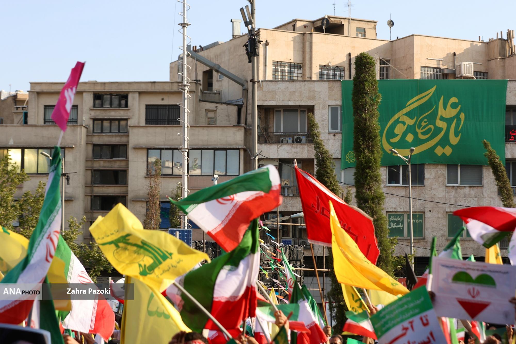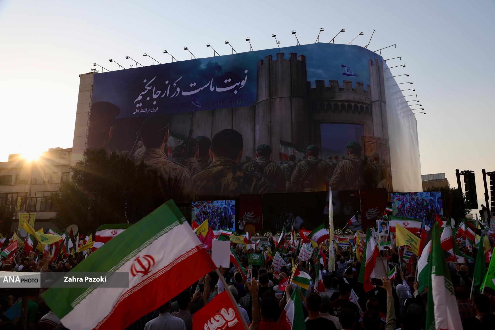 تجمع مردمی «ایران؛ ذوالفقار علی» در تهران همزمان با سراسر کشور از ساعاتی پیش آغاز شده و شهروندان در این مراسم بر اتحاد در برابر دشمن و درخواست پاسخ کوبنده به رژیم صهیونی تاکید دارند