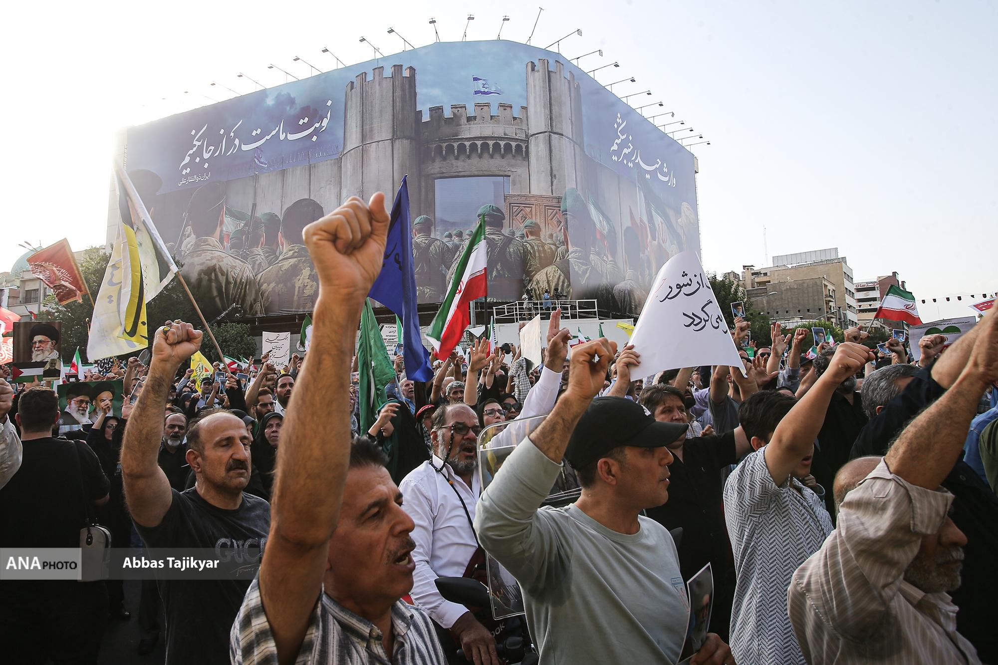 جمعی از مردم تهران عصر امروز با برگزاری تجمعی در میدان انقلاب به حملهٔ تجاوزکارانهٔ آمریکا و رژیم صهیونستی به تأسیسات هستهایِ ایران، اعتراض کردند.