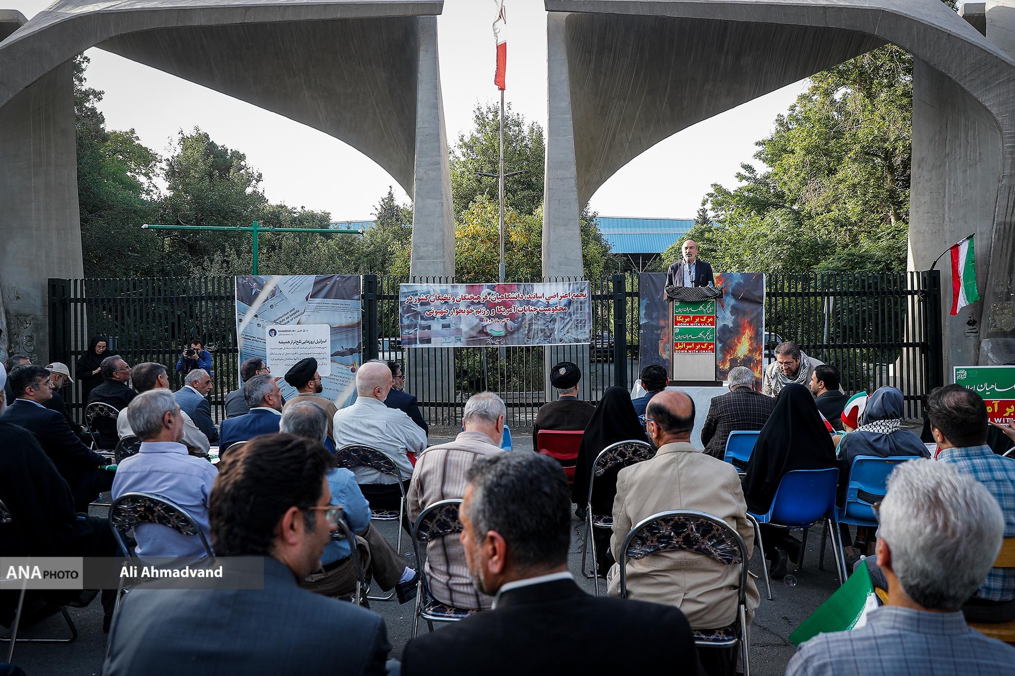 تجمع اعتراضی اساتید، دانشگاهیان و فرهیختگان کشور در محکومیت جنایات آمریکا و رژیم صهیونیستی