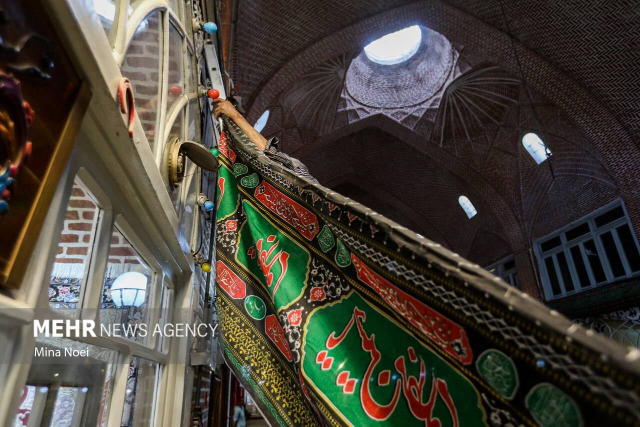 بازار تبریز بزرگترین بازار مسقف جهان است، هر سال با فرا رسیدن ماه محرم، قلب تپنده پایتخت تشیع نیز رنگ و بوی عزا به خود گرفته وسیاه پوش میشود. حجره داران به مناسبت آغاز محرم، فضای بازار تبریز را برای عزاداری سیدالشهدا فراهم میکنند و عشق و ارادت خود را با نصب پرچم سیاه و علم بر سر درب حجرههایشان نشان میدهند.