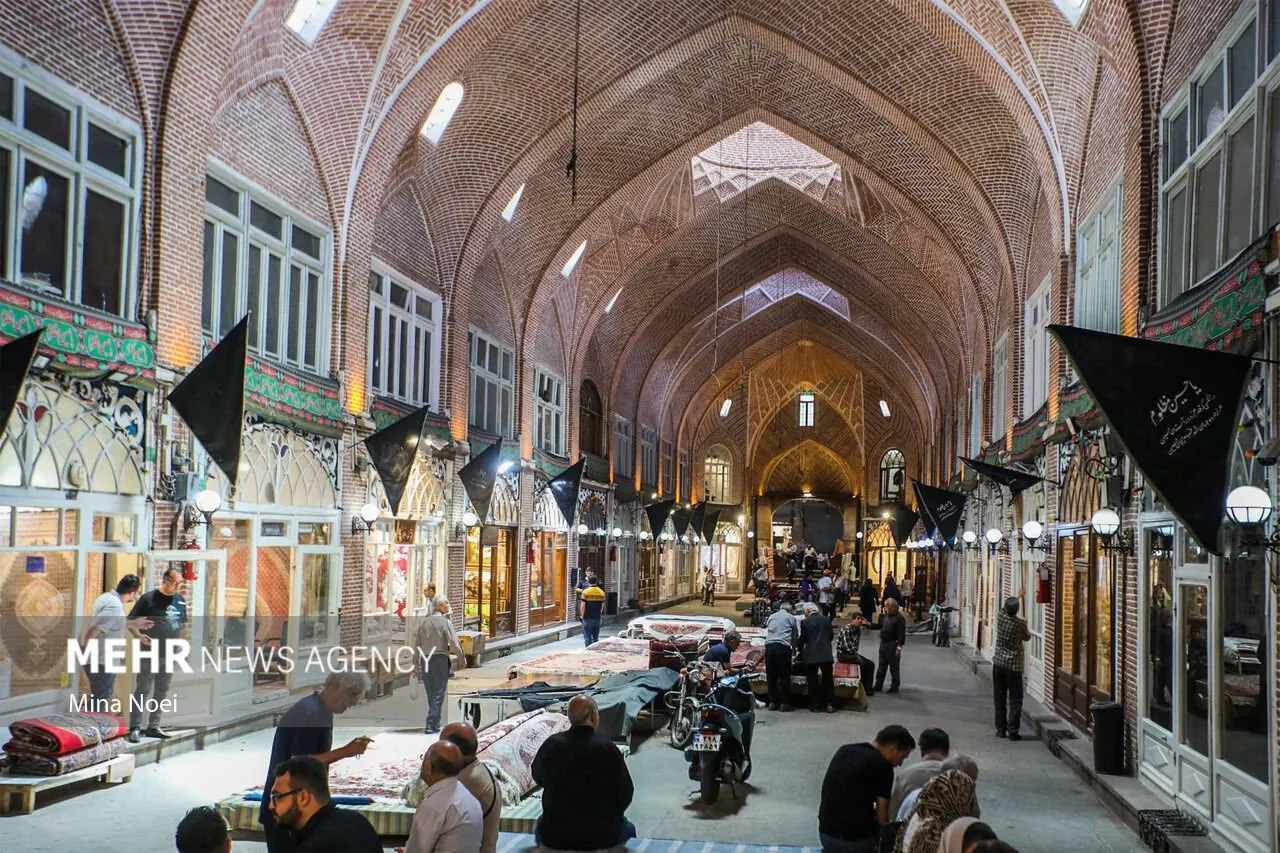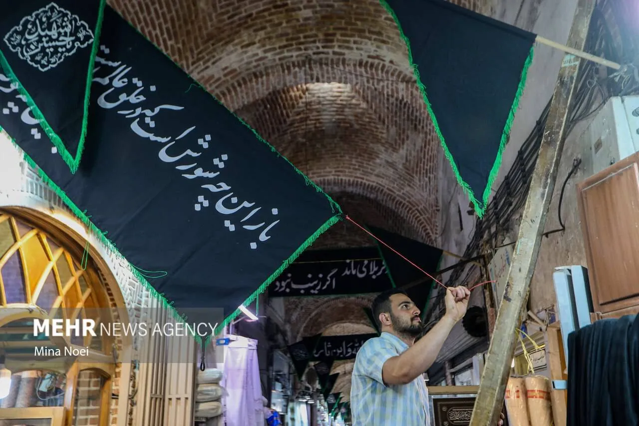 بازار تبریز بزرگترین بازار مسقف جهان است، هر سال با فرا رسیدن ماه محرم، قلب تپنده پایتخت تشیع نیز رنگ و بوی عزا به خود گرفته وسیاه پوش میشود. حجره داران به مناسبت آغاز محرم، فضای بازار تبریز را برای عزاداری سیدالشهدا فراهم میکنند و عشق و ارادت خود را با نصب پرچم سیاه و علم بر سر درب حجرههایشان نشان میدهند.