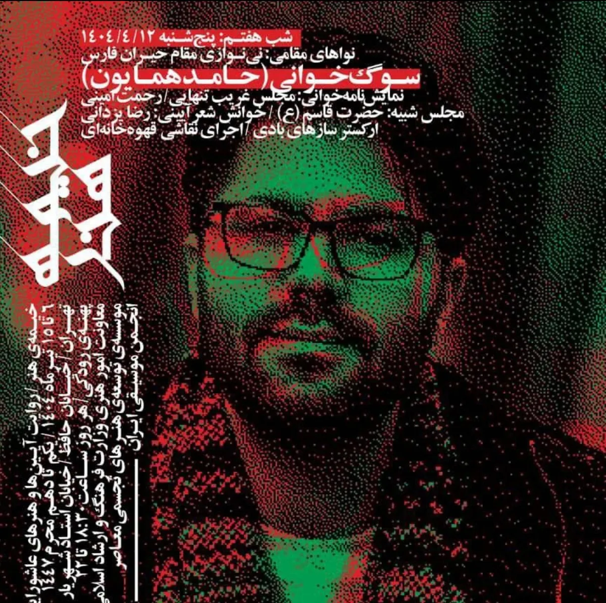 حامد همایون قطعات مختلفی از نواهای مرتبط با ایام سوگواری حضرت سیدالشهدا (ع) در پهنهٔ رودکی اجرا خواهد شد.