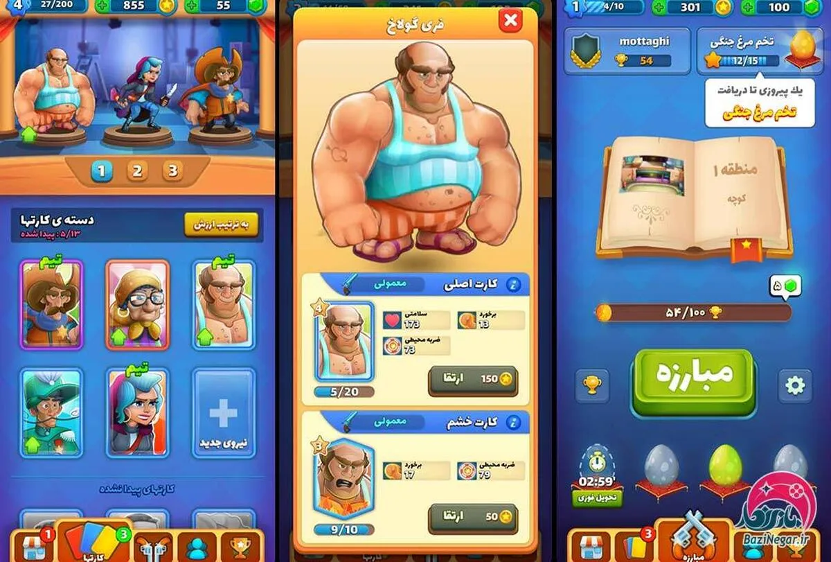 ترکیب استراتژی، مهارت و طنز ایرانی برای خلق تجربه‌ای سرگرم‌کننده و رقابتی. بازیکنان باید با انتخاب درست شخصیت‌ها، ارتقای آن‌ها و اجرای تاکتیک‌های هوشمندانه، در لیگ‌های مختلف پیشرفت کنند و جوایز متنوعی کسب نمایند.