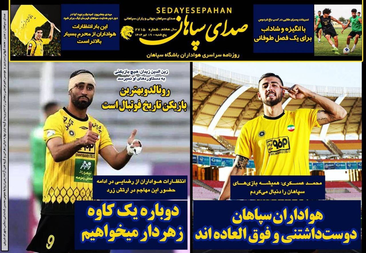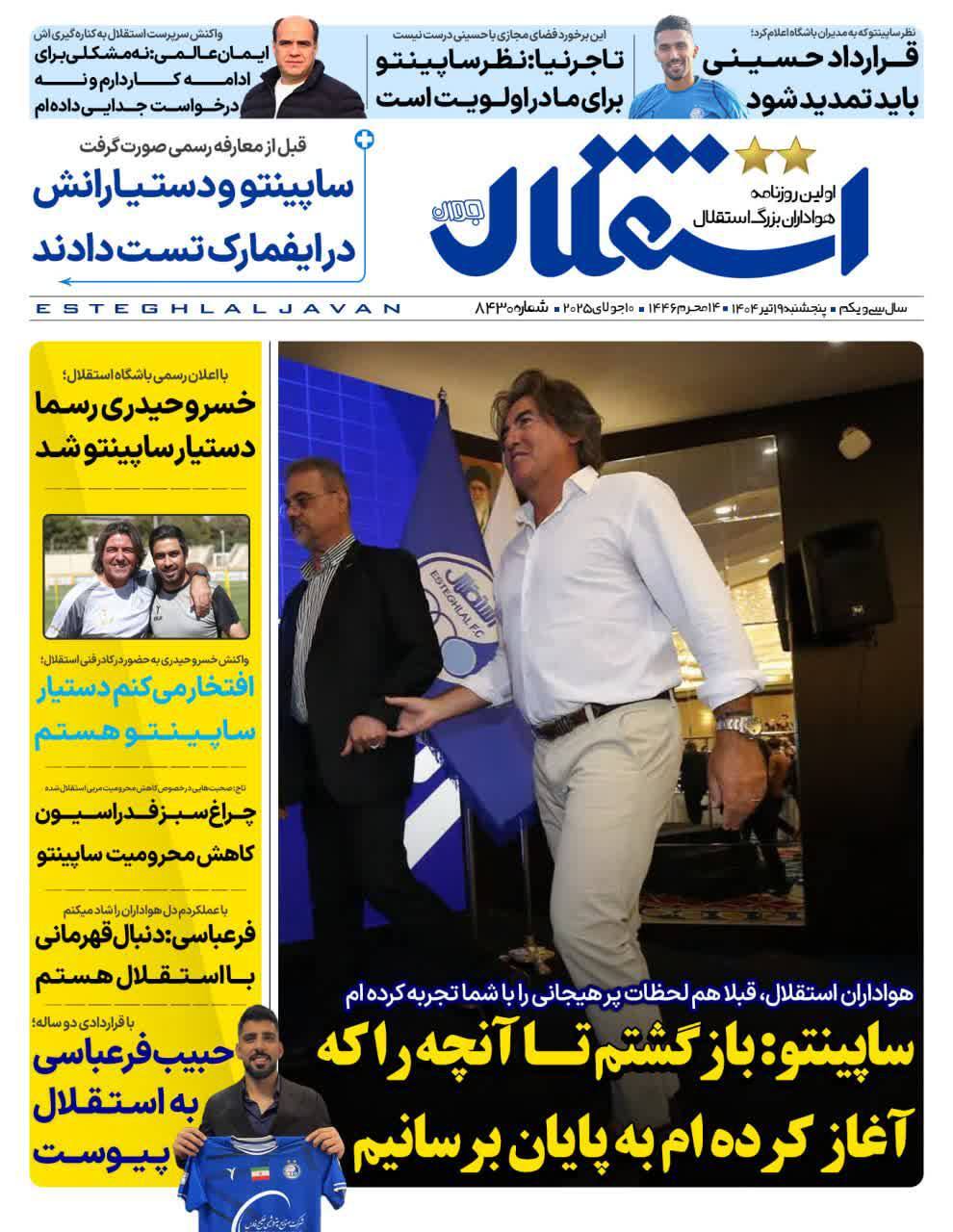 روزنامههای ورزشی پنجشنبه ۱۹ تیر ۱۴۰۴