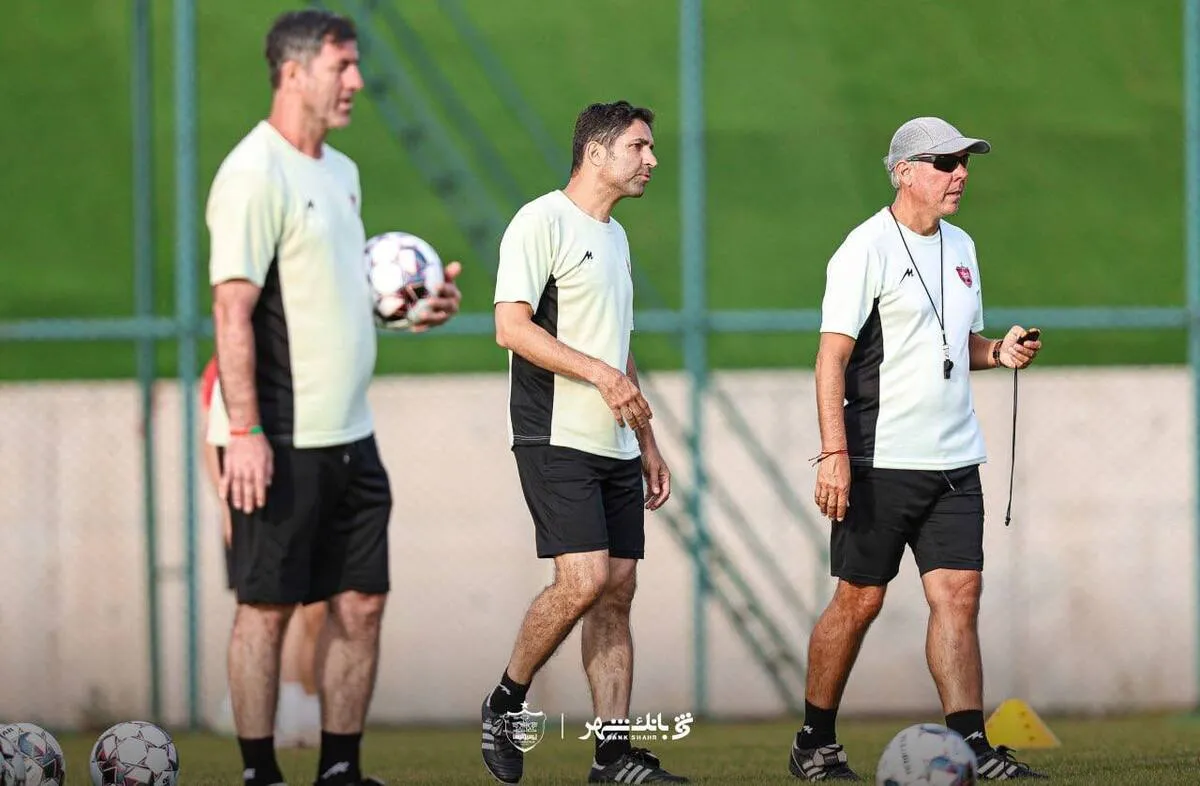 سرمربی، پیش از شروع تمرین دقایقی با بازیکنان درباره اهداف و برنامههای تمرین سخن گفت.