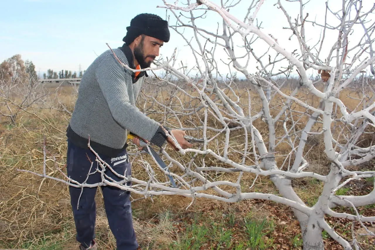 در باغ انار ۲ هکتاری، هرس درختان، حذف شاخههای خشک و حذف علفهای هرز انجام شد. در این باغ که در سالهای گذشته محصول قابل برداشت نداشته تغذیه درختان با کودهای آلی و حیوانی و همچنین آبیاری منظم در الویت اقدامات است.