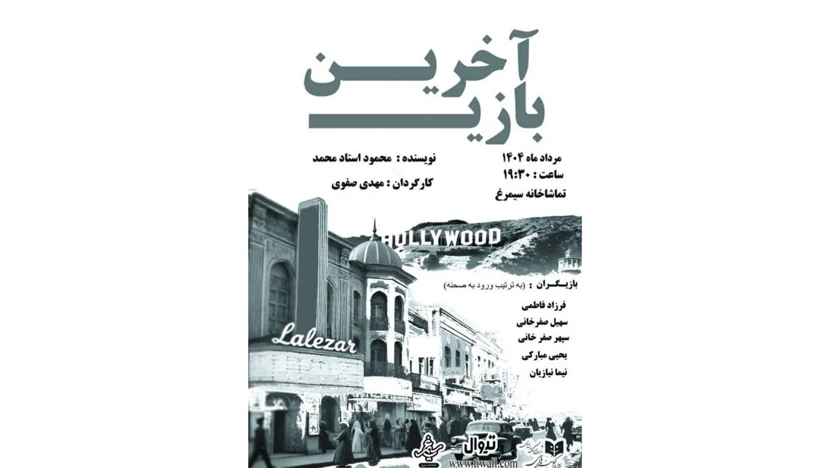 به گزارش خبرگزاری آنا، نمایش «آخرین بازی» به نویسندگی محمود استاد محمد و کارگردانی مهدی صفری، از سوم مردادماه ۱۴۰۴ هر شب ساعت ۱۹:۳۰ در تماشاخانه سیمرغ اجرا خواهد شد. فروش بلیت این نمایش از هماکنون آغاز شده و تا ۲۱ مرداد ادامه دارد.