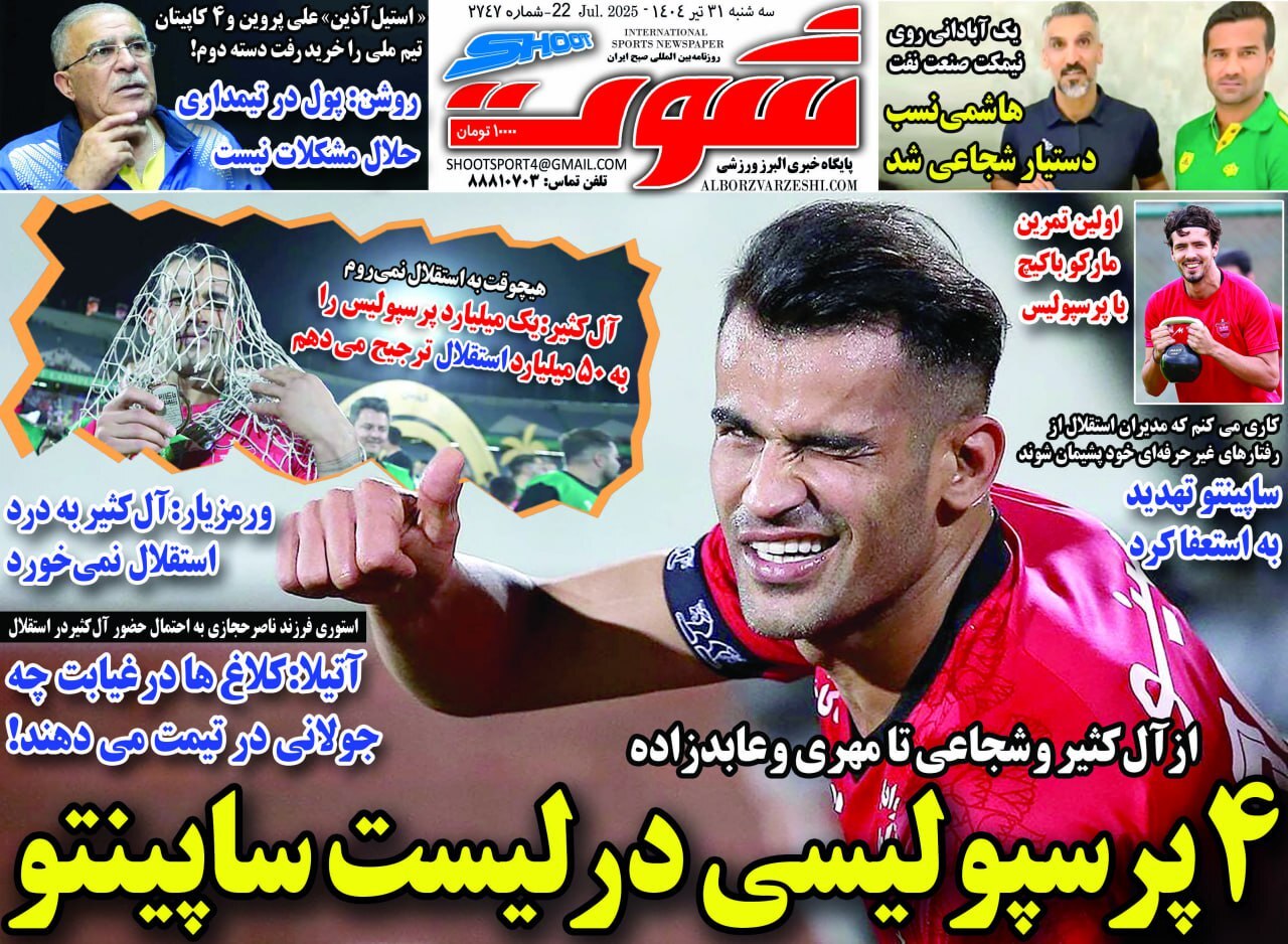 پیشخوان روزنامههای ورزشی سه شنبه ۳۱ تیر ۱۴۰۴ را مشاهده کنید.