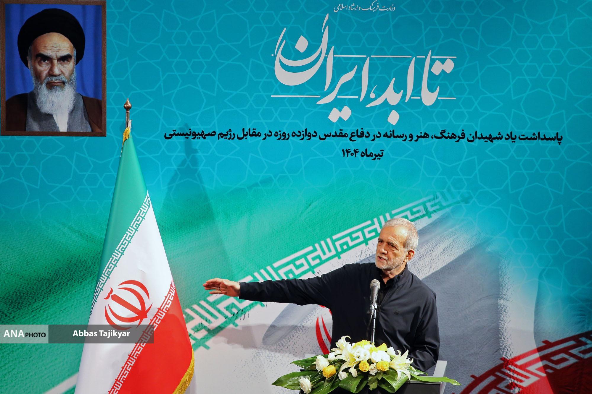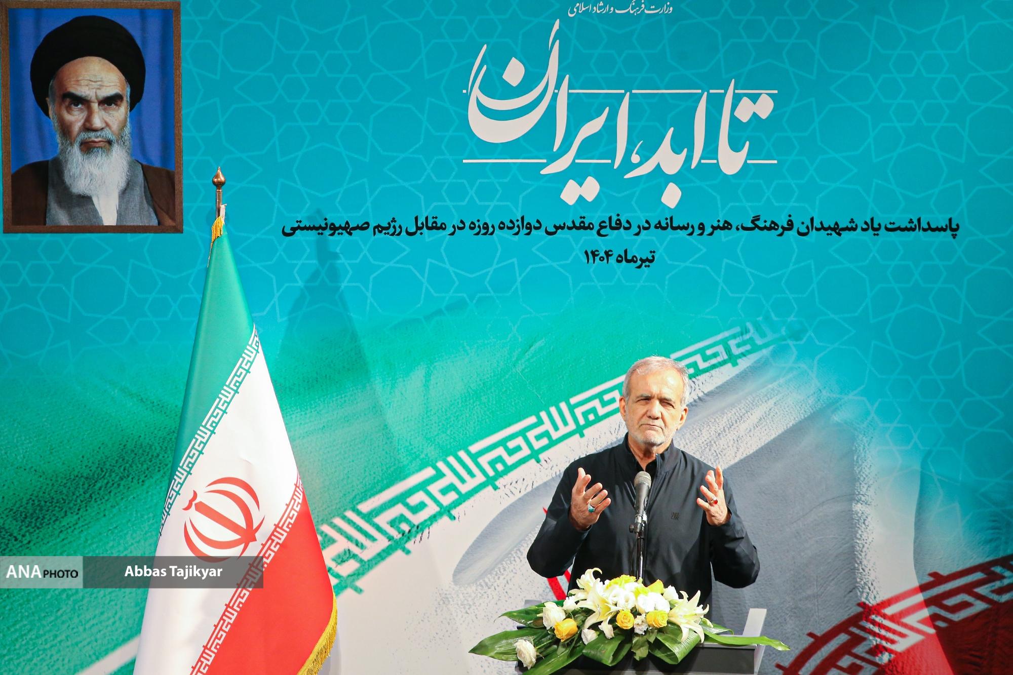 مراسم پاسداشت شهدای فرهنگ، هنر و رسانه در جنگ ۱۲روزه در مقابل رژیم صهیونیستی صبح امروز با حضور مسعود پزشکیان رئیس جمهور، سیدعباس صالحی وزیر فرهنگ و ارشاد اسلامی و جمعی از هنرمندان در تالار وحدت تهران برگزار شد.
