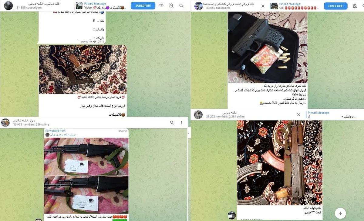 اینجا تلگرام است یا زیرپلههای تگزاس؟/ از کلت ۹ میلیونی تا کلاشینکف ۴۲ میلیونی