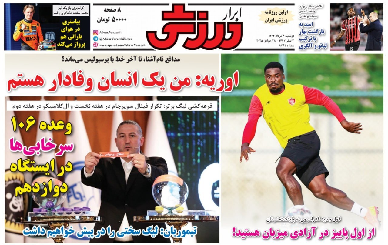 روزنامههای ورزشی دوشنبه ششم مرداد ۱۴۰۴